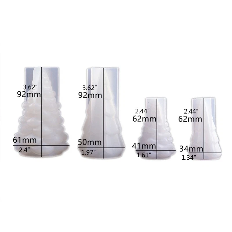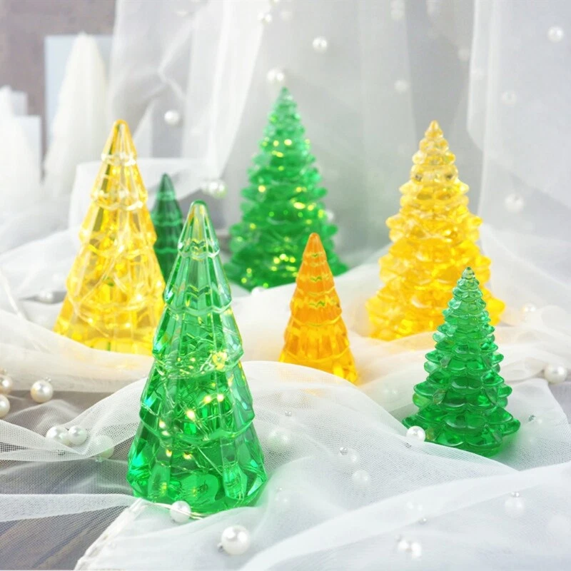 Epoxy Resin Casting Soap Diy Making Tool Hanging Decor 3D Christmas Tree Silicone Epoxy Resin Mold Multi Colored Fairy Night Lights LED Vase Base Light Christmas Tree DIY Mold Feature: Silicone resin mold: our epoxy resin mold is designed for 3D Christmas tree making, the mold is silicone material, featuring flexibility and durability, easy to demold, you can keep them for long for time applying, convenient for you DIY resin projects Easy to demold: the 3D Christmas tree silicone resin mold is easy to demold, it is smooth and bright inside, you don'for t need to cut or polish the finished resin, and after your Christmas tree craft is solidified, you can release your creation out of your epoxy resin mold Light decorations: there is a multi color fairy string light and a LED vase base light for you to apply, they are button batteries powered, these lights can turn into different colors when they are on, you can hang the light string on the craft Christmas tree and put the vase base light under the tree, these lights can make your and attractive Versatile usages: you can apply the 3D tree mold with multi color fairy and LED vase base light to make birthday, Christmas, Mother's Day, Father's Day, Valentine's Day gifts, DIY a Christmas tree craft with colorful decorations, and take the craft as a night light, or you can take the set to resin jewelry manufacturers or resin DIY lovers directly as a practical Silicone Color:Clear White Type: 1 2 Styles Small Christmas Tree Molds 2 2 Styles Large Christmas Tree Molds 3 2 Styles Small + 2 Styles Large Christmas Tree Molds Size: Small Height 6.2cm/2.4" Large Height 9.2cm/3.6" More detailed,please see photo, Note: 1cm=10mm=0.39inch Please allow 0-3mm error due to manual measurement. pls make sure you do not mind before you bid. Due to the difference between different monitors, the picture may not reflect the actual color of the item. Thank you! Package includes: 1 Set x Christmas Tree DIY Mold.