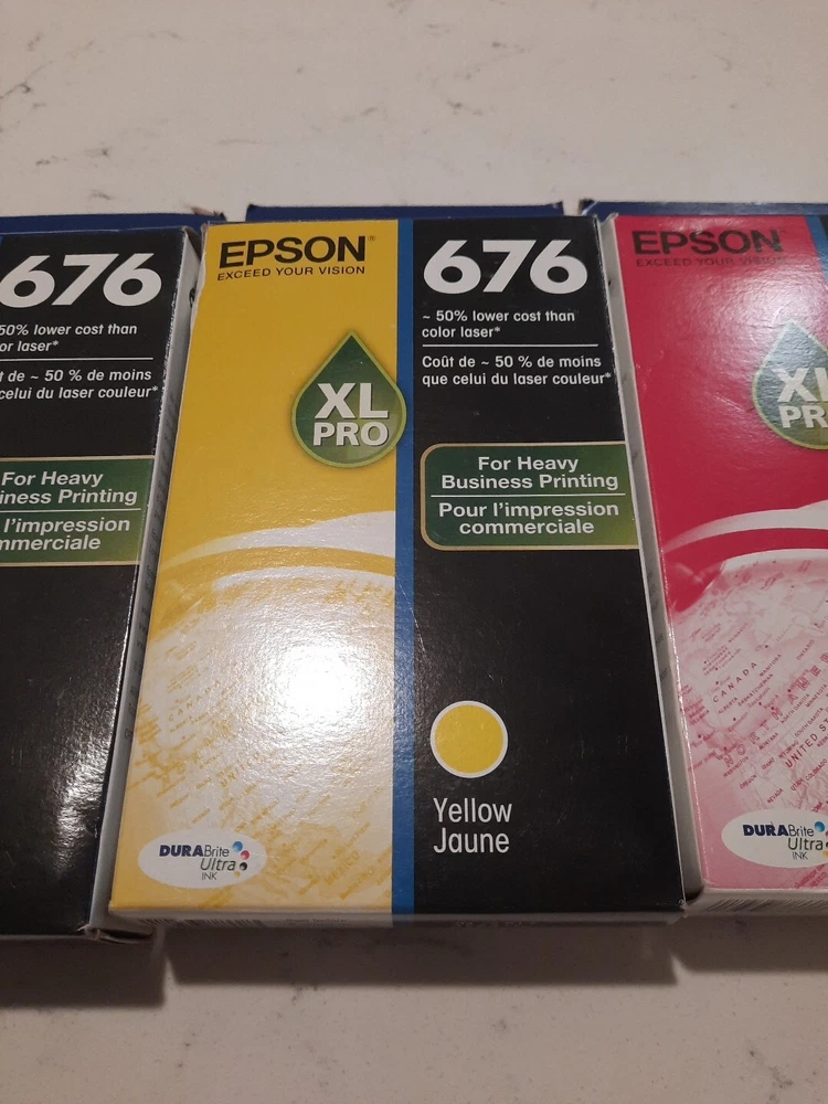 Model: Epson 676XL Brand: Epson Color: Cyan, Magenta, Yellow Compatible Brand: For Epson Type: Genuine/Original