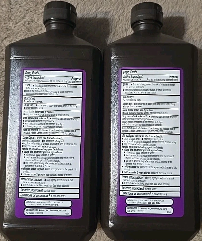 Equate 3% Hydrogen Peroxide Liquid AntibacterialSolution Antiseptic 2 Pack 32x2.