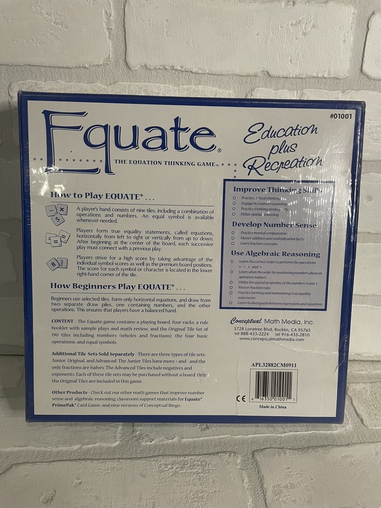Equate The Equation Thinking Math Board Game Educational Fun New Sealed. Condition is New. Shipped with USPS Ground Advantage.