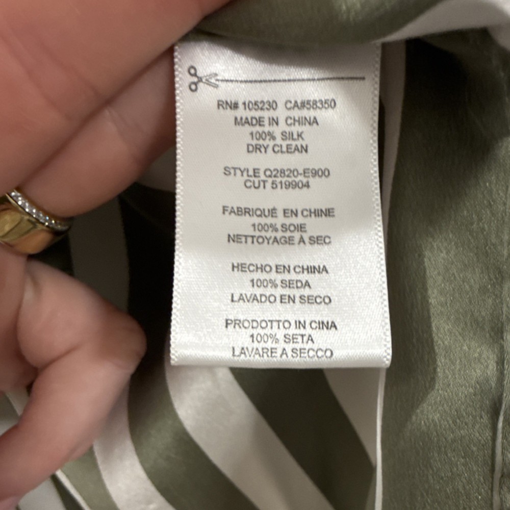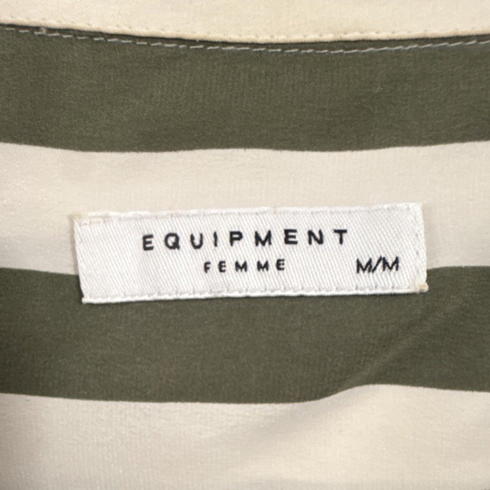 Brand: Equipment MPN: Q2820-E900, 519904 Theme: Classic Closure: Button Season: Spring, Summer, Fall Size: M Pattern: Striped Neckline: Collared Department: Women Garment Care: Dry Clean Only Accents: Button Type: Blouse Occasion: Casual, Workwear Material: Silk Size Type: Regular Color: Green, White Fabric Type: Silk Sleeve Type: Classic/Fitted Sleeve Style: Blouse Sleeve Length: Long Sleeve