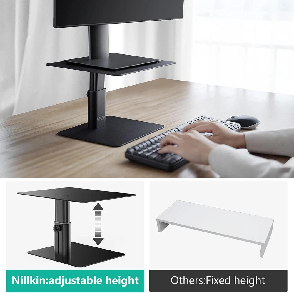 Product Description Monitor Stand Riser For Desk, Adjustable Height Computer Monitor Stand, Ergonomic Aluminum Computer Desk Holder For Imac,Macbook, Dell, Hp, Lenovo And Other Screen Display, Black Adjustable Height &Amp Ergonomic Design - You Can Adjust The Height By Your Stature And Sitting Posture. Convenience To Working, Typing And Viewing. This Monitor Stand Can Relieve The Stiffness Of Your Back And Neck. Wide Compatibility - Support Up To 33.07 Lbs(15Kg). Monitor Riser Stand Is Compatible With All Screen Display And Laptop, Such As Tv, Pc, Laptop, Computer. Macbook, Macbook Air/Pro, Surface, Lenovo, Pixelbook, Dell Xps, Hp, Asus And Other Screen Display. Stable - Panel Size: 29*22.8Cm, Stand Weight: 2.5Kg. Monitor Stand Is Made Of Metal And Adopt Cnc Processing. Stable And No Wobble. And Is Not Easy To Bend Or Dent. The Skidproof Pad At The Bottom Helps Prevent The Stand From Sliding. Storage Function - Sufficient Space Between The Metal Plates. You Can Place Keyboard And Book,Etc. Free Up Space Of The Table Top. Simple To Use - The Computer Stand Is Composed Of 2 Base Plates And A Support Rod. Easy Assembly. Packing Included Screw Driver And 6 Pcs Screw, It Can Be Completed Assemble With Only A Screw Driver. About Us We are a reputable seller with many years of experience selling on eBay. Our goal is to provide high-quality products and excellent customer service. Shipping Items will be shipped within 1-3 business days when we received payment. (Orders are not processed on weekends & holidays) Tracking information will be sent once item is shipped. Delivery time depends on destination and other factors Item is shipped to ebay address. Leaving correct address can minimize delay. For international shipping and shipping to Guam, Hawaii and Alaska, Please contact us before placing the order. International buyers please note: Import duties, taxes and charges are not included in the item price or shipping charges. These charges are buyer’s responsibility. We will try our best to reduce the risk of the custom duties. Local pick-up is unavailable at the moment. Contact Us We reply any email messages within 1 business / working days(off-duty at weekend). If you do not get a response from us, then please check your junk or spam mailbox. Our Business hours: Mon-Fri 9:00-18:00, UTC/GMT +8 hours. Please contact us either by clicking "contact seller" in the "purchase history" section or simply click "ask a question" at the bottom of this page. If you are unsatisfied with our item or service, please contact us before leaving any feedback. We are committed to resolve all issues in a friendly and satisfactory manner.