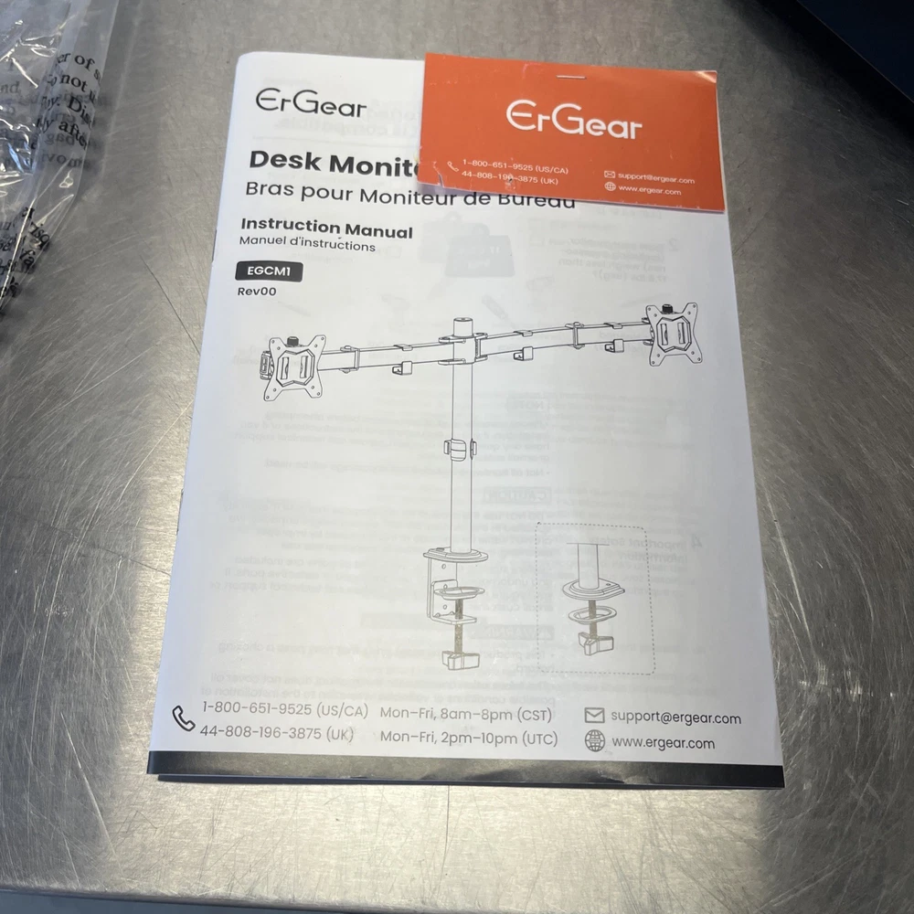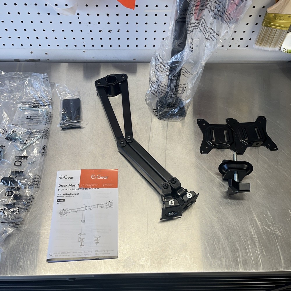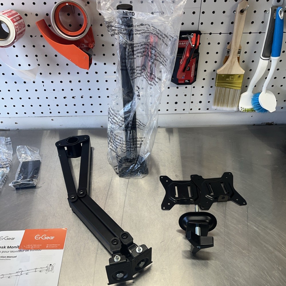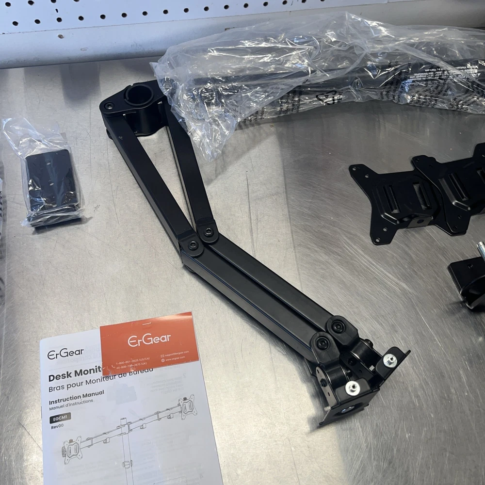 Ergear EGCM1 Dual Monitor Stand Heavy Duty Adjustable Desk Mount Black Desktop. Shipped with USPS Ground Advantage.