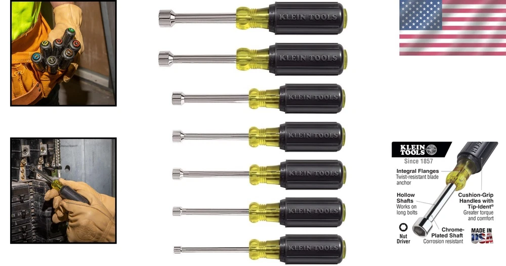 Ergonomic 7-Piece Nut Driver Set with Quick Size Identification - Made in USA