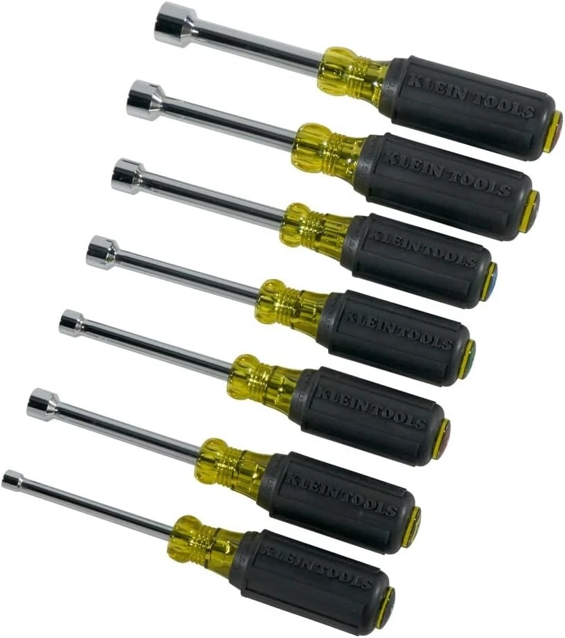 Item Weight: 1.47 pounds Usage: Personal Item Diameter: 3 inches Batteries Required?: No Batteries Included?: No Brand: Unbranded UPC: Does Not Apply Global Trade Identification Number: 00092644650154 Head Style: Hex Item Dimensions L X W X H: 9 X 8 X 2 Inches Measurement System: Inch Size: One Size Style: Non-magentic Type: Nut Driver Set Item Package Quantity: 1 Features: Cushion Grip, Color-Coded Handles, Tip-Ident, Hollow Shaft Design, Cushion-Grip handles, Tip-Ident color coding, Twist-resistant shaft anchor, Enhanced torque and comfort Power Source: Corded-electric Product Dimensions: 9 X 8 X 2 Inches System of Measurement: Inch gtin13: Does Not Apply Item Height: Klein Tools Nut Driver Set Item Length: Klein Tools Nut Driver Set Certification: Ansi Pattern: Tool Material: Alloy Steel, Chrome Plated Number of Pieces: 7 Model: Klein Tools Nut Driver Set Number Of Items: 1 Color: Factory Special Feature: Ergonomic Special Features: Ergonomic Item Width: Klein Tools Nut Driver Set Thickness: 1 Inches Drive Type: Hex