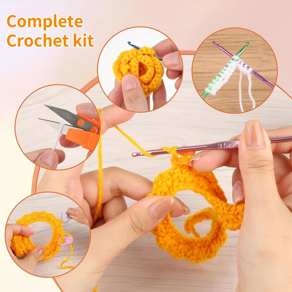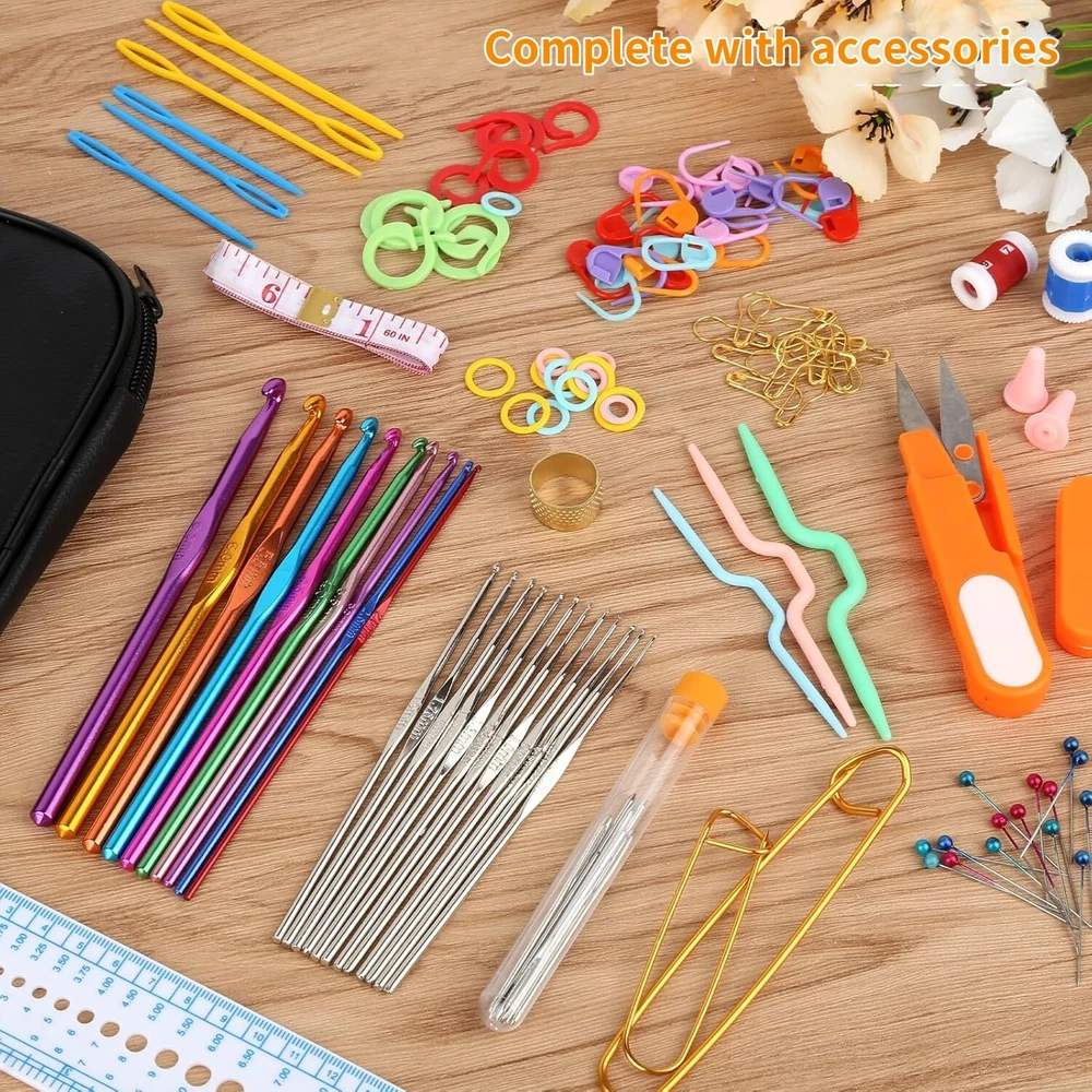 Ergonomic Crochet Hook Set with Carry Pouch Knitting Needles Kit for Starters