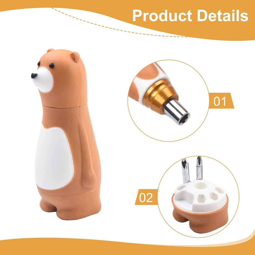 Ergonomic Design 6 In 1 Cartoon Bear Screwdriver Set for Comfortable Grip DESCRIPTION Features: *Brand new and high quality. *Made o f high-quality materials, . *The surfaces of the handle of the bear uses TPR non-slip handle, which is more comfortable to use. *Cute and convenient toy design. *6 In 1 screwdriver meets your multiple needs. Specifications: *Product name: Screwdriver Set *Color: Brown *Material: alloy steel *Size:as shown *Quantity: 1 Set Package Content: 1 Set Screwdriver Note: 1.Transition: 1cm=10mm=0.39inch. 2. The real color of the item may b e slightly different from the pictures shown on website caused by many factors such as brightness of your monitor and light brightness. 3. Please allow slight manual measurement deviation for the data. POLICES Shipping Payment WARRANTY We only ship to confirmed ebay Order addresses. Please comfirm that your Order address is in line with your shipping address. Please kindly note that the c ombined shipping is not provided because the shipping fee is calculated by weight. Also, the each additional item means exactly the the same color and size. It takes about 7 -15 working days to US; about 10-30 working days to other countries. Transit time may be a little delayed because of the bad weather and customs inspection . If you do not receive your item within 30 working days since payment finished, please contact us immediately for further assistance. Payment must be completed within 5 days. If you have any problems about payment, please contact us via ebay message. We strive for 100% customer satisfaction! Positive Feedback is very important to us. If you have any questions, p lease feel free to contact us via "Ask seller a question" . We will reply your email within 24 working hours. On Jan 2, 2025 at 07:44:40 PST, seller added the following information: