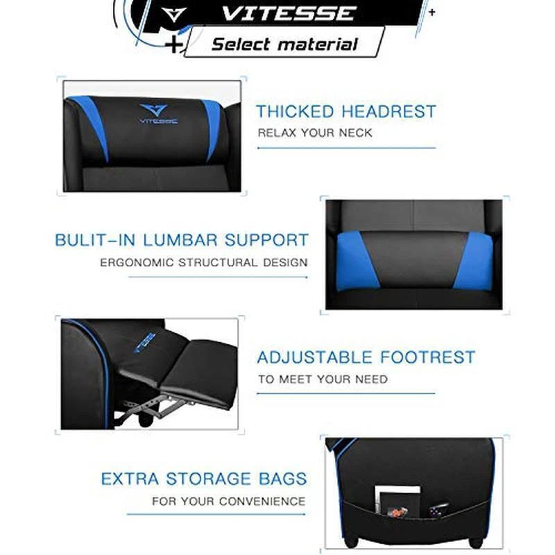 Metal Storage Cabinet with Doors and Shelves 5 Tier Metal Pantry Closet Cupboard 98.22 USD 104.49 USD Free shipping 6% off 118" Wide Baby Gate Metal Safety Playpen Fireplace Fence for Toddler/Pet/Dog 53.81 USD 57.24 USD Free shipping 6% off Jewelry Armoire 65" H Full Length Mirror W/ Storage 360° Swivel Shelves Lockable 131.59 USD 139.99 USD Free shipping 6% off Ergonomic Gaming Chair w/ Footrest Reclining Video Game High Back Computer Chair 78.48 USD 83.49 USD Free shipping 6% off Outdoor Storage Shed Galvanized Steel Tool Storage Water Resistant Lockable Door 98.22 USD 104.49 USD Free shipping 6% off 10 Pack Folding Chairs Portable Stackable Seating Events 350lbs Capacity New 133.75 USD 142.29 USD Free shipping 6% off 5X3X6.1FT Outdoor Steel Storage Shed with Frame Floor and Lockable Doors Patio 127.79 USD 135.95 USD Free shipping 6% off Portable Carpet Spot Cleaner Upholstery Cleaning Machine 51 Oz Tank Capacity US 142.69 USD 151.8 USD Free shipping 6% off 3-in-1 Flat Panel TV Stand for TVs up to 65" Entertainment Center Media Storage 200.97 USD 213.8 USD Free shipping 6% off 9ft Slim Pencil Christmas Tree Prelit W/ 500 Lights Realistic Design Metal Stand 137.18 USD 145.94 USD Free shipping 6% off 6FT Christmas Inflatable Gingerbread Man Cocoa Mug LED Yard Decoration New 60.62 USD 64.49 USD Free shipping 6% off Nursery Glider Chair Ottoman Set Rocker Comfortable Recliner Nursing Multi-Use 148.56 USD 158.04 USD Free shipping 6% off About this item Selected Material: High resilience sponge is wrapped in durable PU leather. High-density thicker sponge make you sit more comfortably, and the waterproof leather not only skin-friendly, but also easy to clean Multi-Function Use: The adjustable back and footrest can be adjusted from 90 to 180 degrees , suit for gaming, watching TV, napping and so on Ergonomic Design: Coming with a headrest and a back support. Provide lasting support, built to perfection to allow you to continue gaming for hours on end Sturdy Frame System: Sturdy frame made by stainless steel and hardwood, max capacity:300 LBS. With four protective foot cover, effectively prevent your floor from being scratched Brand VITESSE Color Blue Product Dimensions 28. 5"D x 25. 2"W x 40. 7"H Size 28. 5D x 25. 2W x 40. 7H in Back Style Solid Back Material Leather Item Weight 59. 4 Pounds Frame Material Stainless Steel Seat Material Type Leather Steel Pneumatic Hand Truck Dolly 600Lb Capacity 10in Tires Nonmarking Wheels New 58.74 USD 62.49 USD Free shipping 6% off Rabbit Hutch Bunny Cage Guinea Pig Cage Bunny Hutch Indoor Wood Pet Cage New 108.09 USD 114.99 USD Free shipping 6% off 48-Inch Computer Desk with Fabric File Cabinet and Fabric Drawers Reversible 108.56 USD 115.49 USD Free shipping 6% off Pink Cute Kawaii Gaming Chair for Girl Ergonomic Desk Racing Office Adjustable 73.53 USD 78.22 USD Free shipping 6% off 61 Inch L Shaped Computer Desk with Drawers Corner Desk with Power Outlets 157.44 USD 167.49 USD Free shipping 6% off Makeup Vanity Desk with Mirror and Lights Charging Station Storage Drawers White 98.21 USD 104.48 USD Free shipping 6% off TV Stand with Power Outlet Floating TV Stand with RGB Lights Black Media Console 78.48 USD 83.49 USD Free shipping 6% off 62.5" Modern Organizer Storage 3 Shelf Floor Lamp with White Linen Fabric Shade 49.51 USD 52.67 USD Free shipping 6% off Computer Desk 59" with File Drawer Gaming Desk with LED Light Power Outlets 118.48 USD Free shipping 4 Person Camping Tent Heavy Duty Backpacking Tent Weather and Flame Resistant 64.28 USD 68.38 USD Free shipping 6% off Small Refrigerator 1.6 Cu.Ft Mini Fridge W/Freezer Reversible Single Door Office 98.22 USD 104.49 USD Free shipping 6% off Ergonomic Gaming Chair w/ Footrest Reclining Video Game High Back Computer Chair 78.48 USD 83.49 USD Free shipping 6% off