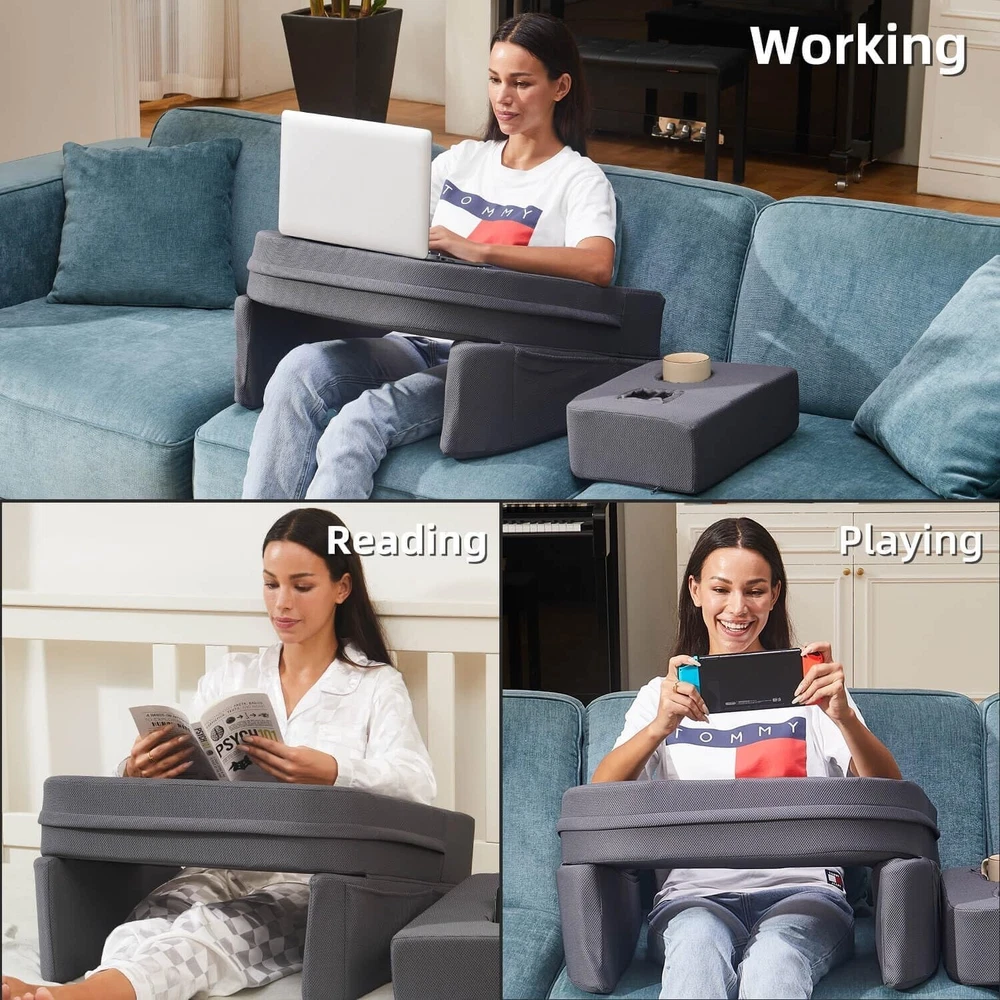 Assembly Required: No Style: Modern gtin13: Does not apply UPC: Does not apply Material: Memory Foam Compatible Laptop Size: 15 in, 17 in Laptop, 14 in Laptop, 13 in, 13 in Laptop, 7 in Laptop, 8 in Laptop, 9 in Laptop, 10 in Laptop, 11 in Laptop, 12 in Laptop, 15 in Laptop, 16 in Laptop, 18 in Laptop, 19 in Laptop, 20 in Laptop, 21 in Laptop Type: Lap Desk Brand: Unbranded Features: Foldable, Multi-Functional, Ergonomic Design, Extra-Large Surface, Excellent Arm Support, Built-In Leg Grooves, Side Pockets, Machine-Washable Cover, Cup Holder, Soft Touch Fabric Item Weight: 5.66 Pounds Special Feature: Cup Holder, Foldable, Adjustable Included Components: Reading Pillow, Cup Holder Color: Gray Product Dimensions: 20.47"d X 22.05"w X 12.2"h