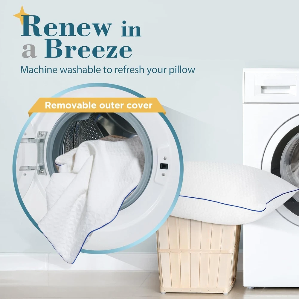 PRODUCTS DESCRIPTION AZ/55 Adjustable Loft and Firmness: Finicky sleepers will also like Viewstar adjustable pillows. Just unzip the casing, then add or remove fill to your liking. Great Neck and Shoulder Support: Viewstar memory foam pillows are designed with an ergonomic focus. The pliable memory foam perfectly conforms to your head and neck, ensuring optimal alignment of the head, neck, and spine. Long-Lasting Comfort: The pliable and elastic memory foam filling keeps the pillow plump all night long and never flattens. Say goodbye to constant adjustmentsand and enjoy uninterrupted for better sleep. Trustworthy High-quality Materials:The ultra-soft and breathable cover, combined with shredded memory foam and a ventilated filler, keeps the bed pillows cool and refreshed. It is CertiPUR-US certified, ensuring safe, chemical-free materials for your comfort. Hassle-free Use: Hotel Pillows come vacuum-sealed for shipping and bloom like new when opened. Please air out for 24 hours or wash the outer cover to dissipate odors. The outer cover can go right into your washing machine and dryer. Product Description Viewstar Bedding Collections The video showcases the product in use. The video guides you through product setup. The video compares multiple products. The video shows the product being unpacked. Due to an increase in the demand for sleeping quality, we break the stereotypes of traditional pillows and create the personalized pillows for customers, which makes users have an excellent sleep. Melt into Comfort Supportive and puffy, viewstar memory foam pillows will gently embrace your head and neck, indulge yourself with this soft but firm feeling which as if lying in mother's arms. Perfect sleep from Adjustable for Customized Support and Loft To have a good night's sleep, the loft — the height of the pillow — is crucial . Viewstar Memory Foam Pillows with adjustable design puts you in control. They are firm enough to support your head and neck, yet soft enough for comfort . Personalized support helps you release stress and get a deep rest. Side sleepers, rejoice! Side sleepers need a higher, firmer pillow that supports the head and eases pressure on the shoulders. Shredded Memory foam pillows fit the bill completely. You can add or remove the shredded-foam filling based on the need of sleeping to get your ideal loft and firmness. How to adjust the pillows? Unzip the outer and inner covers Add or remove appropriate amount of memory foam filling according to your needs Try the adjusted pillow to seeif it fits your head and neck Multiple attempts to get the best fit pillow The video showcases the product in use. The video guides you through product setup. The video compares multiple products. The video shows the product being unpacked. Quality meets comfort Cloud-like Filling Shredded memory foam filling is dynamic and unique, bringing support to delight every slumber. Quality meets comfort Gorgeous Feeling Simultaneously breathing and elegance. Quality meets comfort Long-lasting Plump The air-permeable design keeps it plump like a marshmallow and not easy to clump or go flat. Quality meets comfort We Care About Details Upgraded! The both of zippers has become more smoother. 1 Premium Filling 2 Skin-friendly Cover 3 Fluffy Design 4 Smooth Zipper Considerate for You Meet the Needs of All Sleeping Positions No matter what sleepers you are ( Back, Side or Stomach ), memory foam pillows can cradle your head and neck to provide optimal comfort, because of "Adjustable". Designed with Your Needs in Mind Each pillow comes with an extra 200g of filling so you can DIY your own perfect pillow. Renew in a Breeze Simply toss the removable cover in the washer and dry for easy care. Please note that the inner core is not washable.