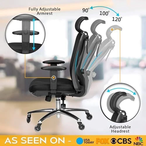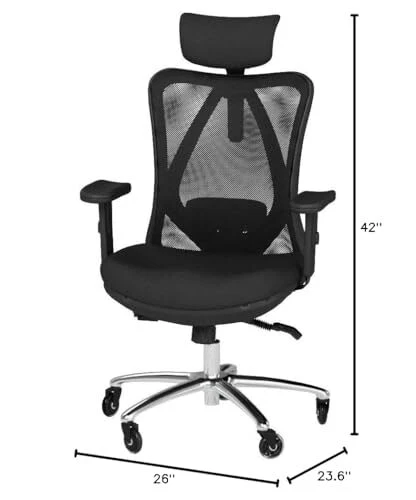 Return Policy Fast Delivery Trusted seller Ergonomic Office Chair - Adjustable Desk Chair with Lumbar Support and Rollerblade Wheels - High Back Chairs with Breathable Mesh - Thick Seat Cushion, Head, and Arm Rests - Reclines Product Description MORE ADJUSTABLE THEN ANY OTHER CHAIR IN ITS CLASS — Unlike the office chairs sold by our competitors, which allow you to either fully recline or sit upright. BREATHABLE MESH - The breathable mesh back on this ergonomic office chair provides support while keeping your back cool and comfortable. Cool air circulates through the mesh keeping your back sweat-free. FULLY ADJUSTABLE BACK SUPPORT - Having back issues or don’t want to develop them? Our unique office chair includes adjustable lumbar support that goes in and out, up and down. EASY TO INSTALL - Simple instructions enable anyone to put this executive chair together in eight simple steps! Then once built you’ll be able to adjust the chair to your individual needs. HIGHEST QUALITY WITH 5-YEAR WARRANTY - This adjustable task chair is made to last. It has a weight capacity of 330 LBS and is made from the highest quality materials. Shipping Returns Payment Shipping Shipping is FREE to all addresses other than APO/PO boxes in the lower 48 states. All our stock ships from US-based warehouses. Shipped via USPS or UPS (depending on location and package weight) Unless stated otherwise, all orders will ship within 24-72 hours of your payment being processed. Check our feedback to see the great reviews of FAST shipping we offer. Returns Seller does not accept returns Payment We currently accept payment via eBay managed payments only. Once payment is cleared, we will dispatch your shipment within 1-3 business days. Please refer to the "Shipping" tab for more information regarding shipping speed to your destination.