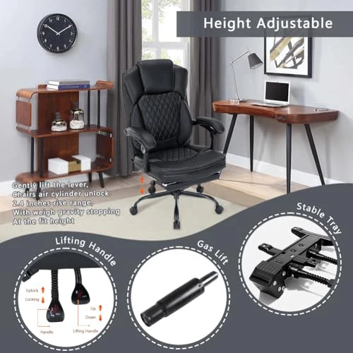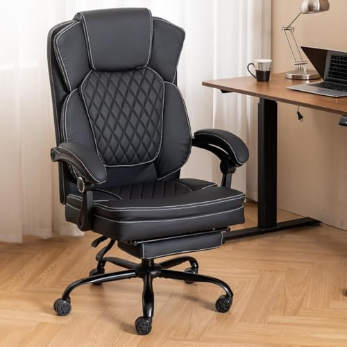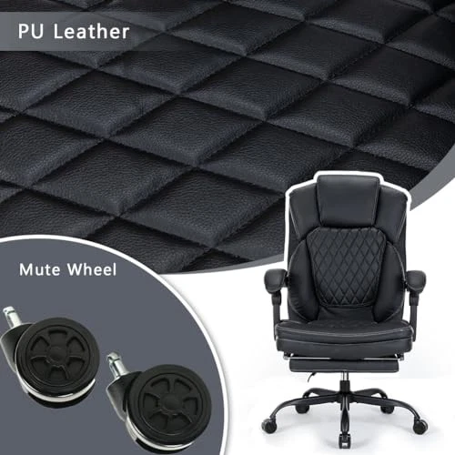 This chair is a game-changer for long workdays! The extra-wide seat and thick cushioning make it super comfortable, even for bigger frames. The reclining feature and footrest are perfect for quick breaks, and the PU leather looks sleek while being easy to clean. Sturdy build with great lumbar support—no more back pain after hours at the desk. Shipping was fast, and assembly took under 30 minutes. Worth every penny for the comfort and quality!