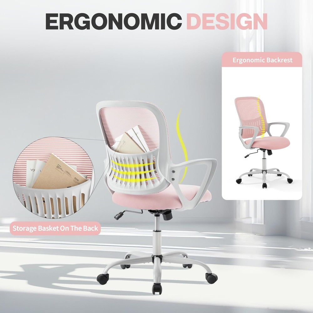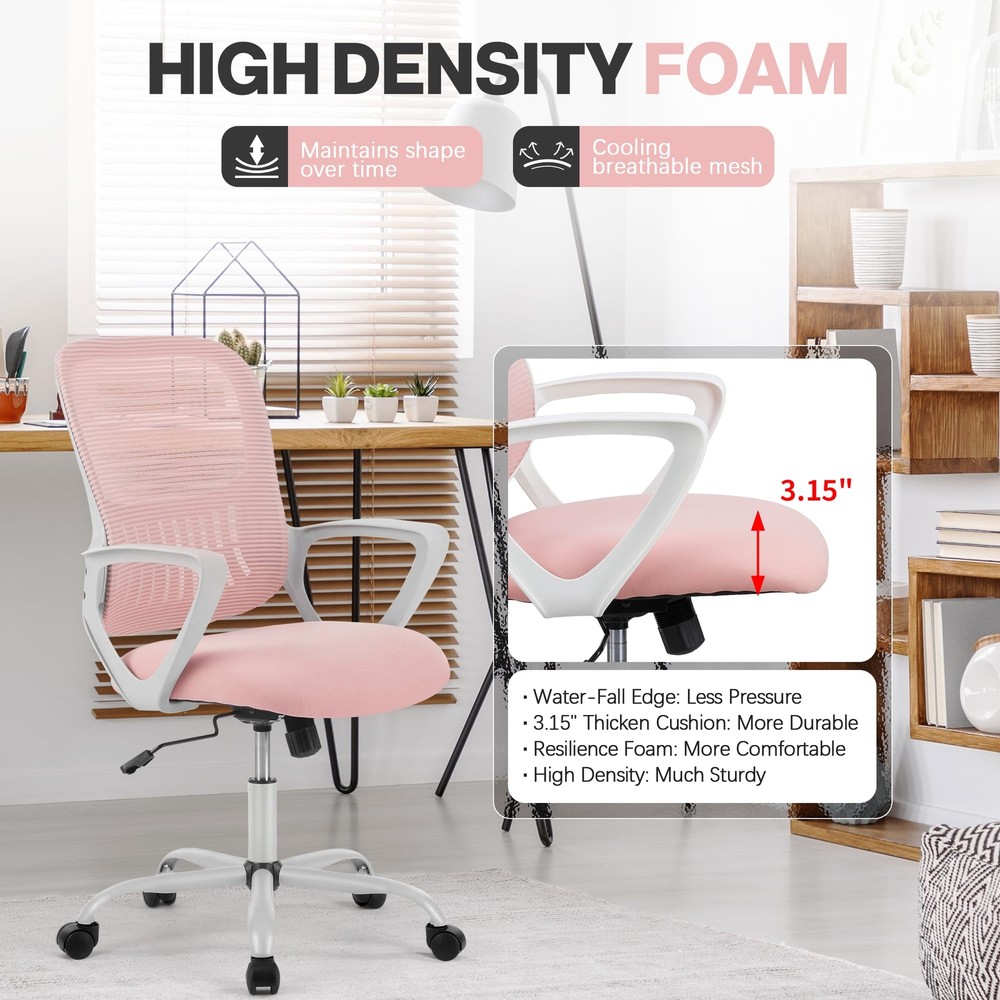About this item Ergonomic Comfort: Ergonomically designed to support the natural curvature of the spine, this office chair promotes correct posture and reduces back strain while working.Meanwhile, this office chair features a breathable mesh backrest and upholstered seat that provides all-day comfort. Versatile Recline Positions: Easily adjust the chair's height, tilt angle and the chair's 360-degree swivel function to find your ideal sitting position according to your personal needs, perfect for home office, study, game setup and more. Superior Breathability: This chair is designed with premium breathable mesh fabric, keeping you cool and comfortable even during extended sitting sessions. The mesh back adds a modern aesthetic, aligning with the dynamic nature of workspaces. Sturdy and Stable Construction: This chair features a sturdy metal base, with a durable metal frame, smooth-rolling casters, and a weight capacity of 250 lbs, this chair accommodates users of various body types with ease. Effortless Assembly: Enjoy stress-free setup with our comprehensive installation instructions and included tools, ensuring you can assemble your product with ease.