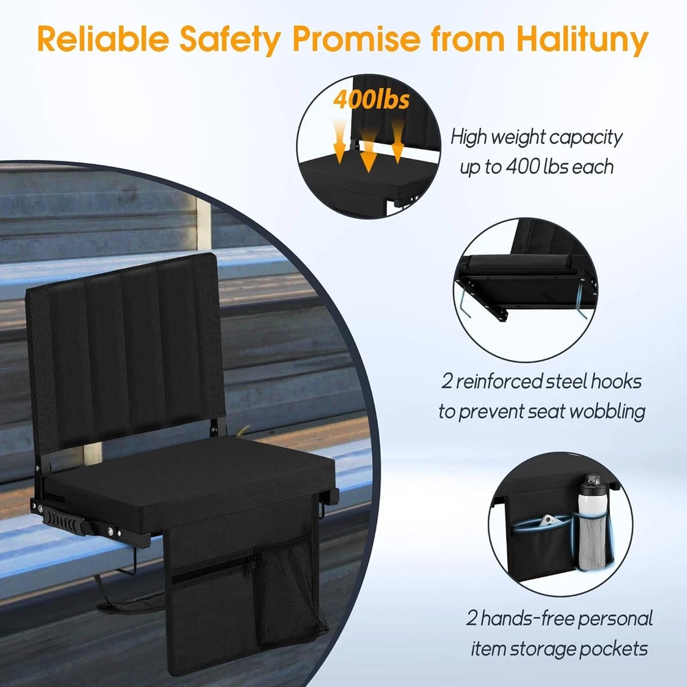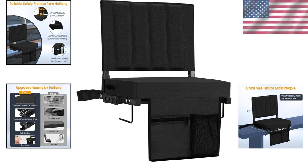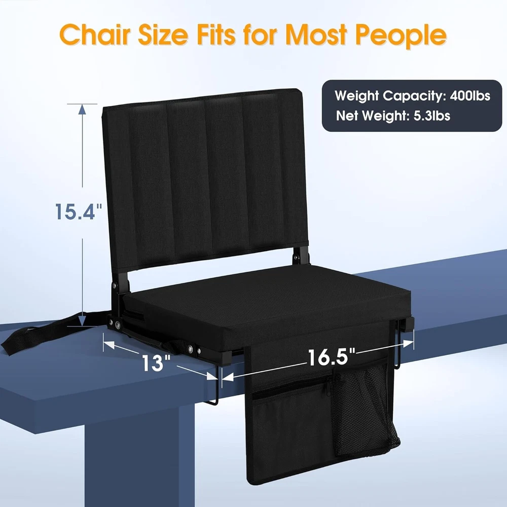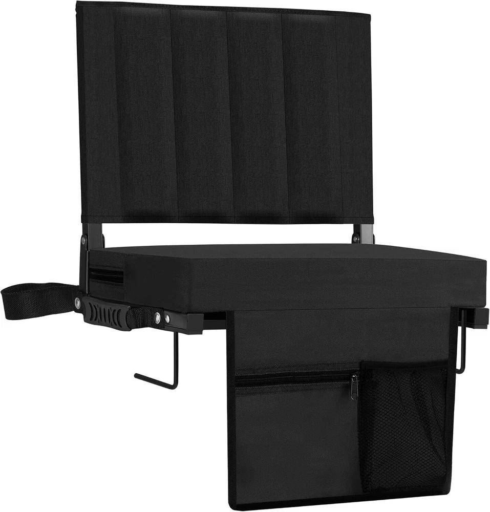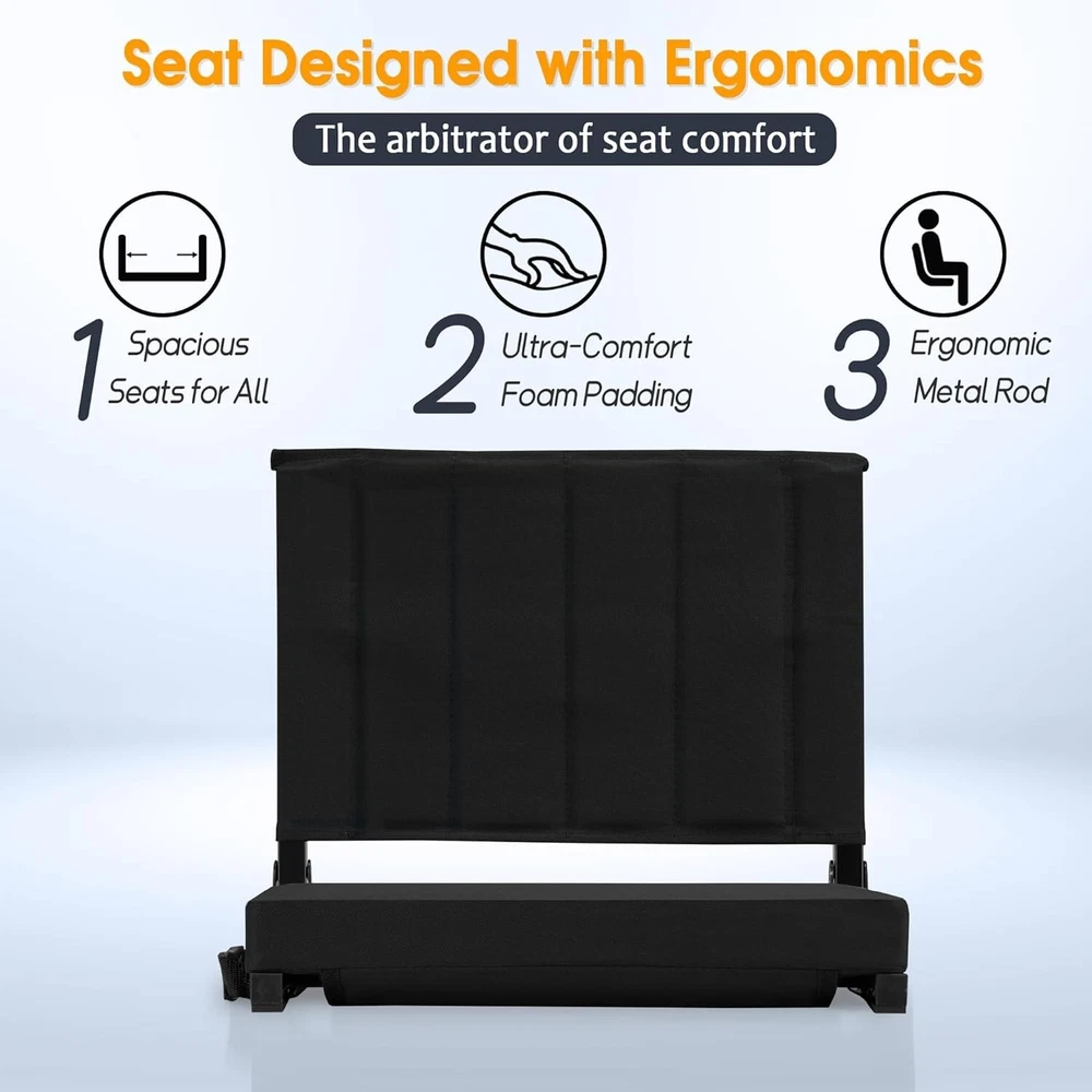Ergonomic Stadium Seat with Plush Cushion & Metal Hooks - Ideal for All Events