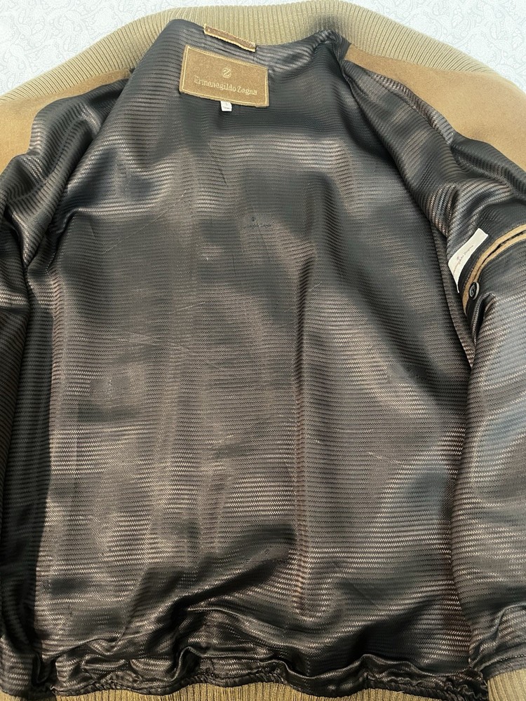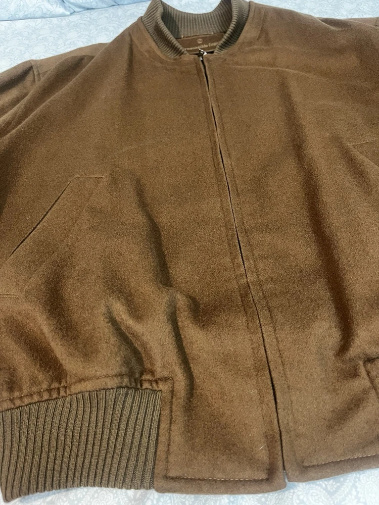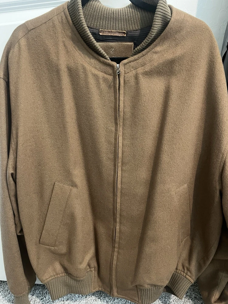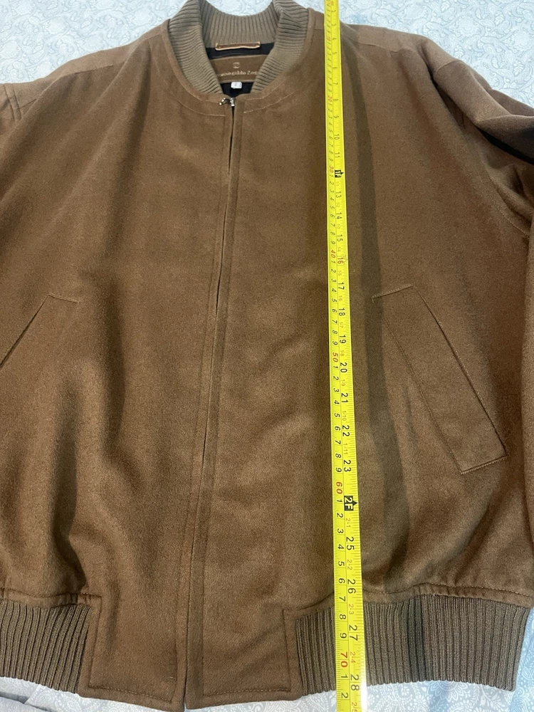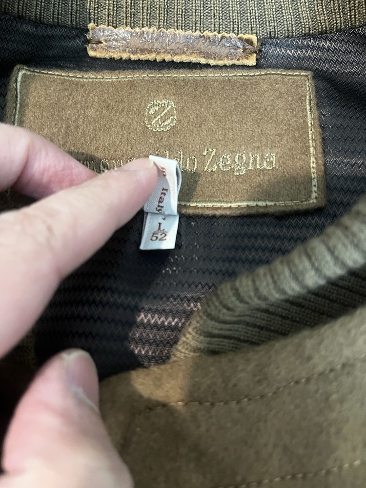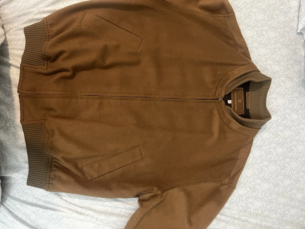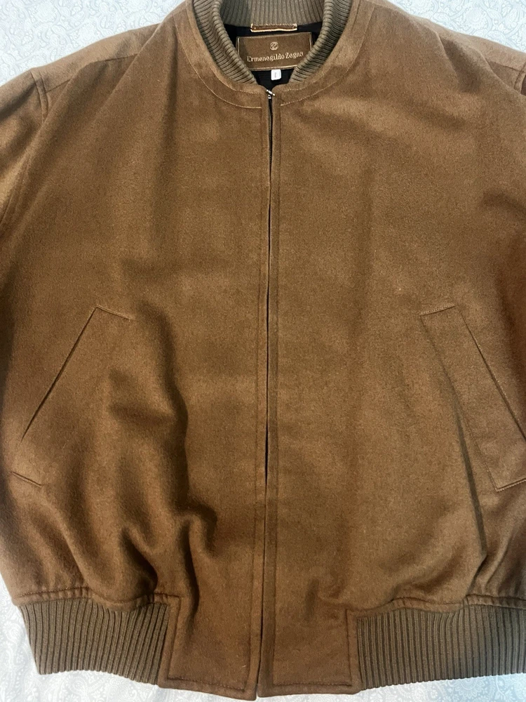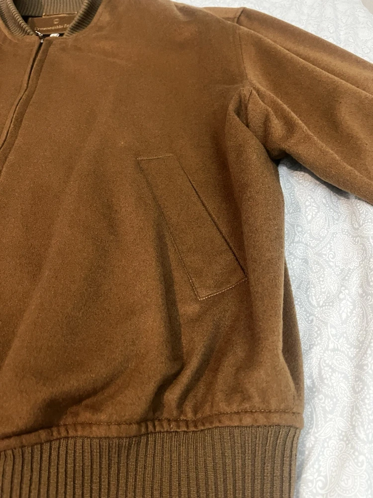 Luxury craftsmanship from Ermenegildo Zegna. This is a men’s wool bomber jacket featuring a premium Riri zipper, ribbed knit collar/cuffs/hem, and a clean minimalist silhouette. Made in Italy with high-end materials and construction throughout. A timeless, understated piece that works dressed up or casual. Details: • Brand: Ermenegildo Zegna • Style: Bomber / Zip Jacket • Color: Brown • Material: Wool outer (see photos), smooth interior lining • Zipper: Riri (Swiss-made premium hardware) • Size tag: IT 52 (Men’s Large) • Made in Italy Condition: • Excellent pre-owned condition • No holes, stains, or odors • Zipper works perfectly • Light, normal wear only