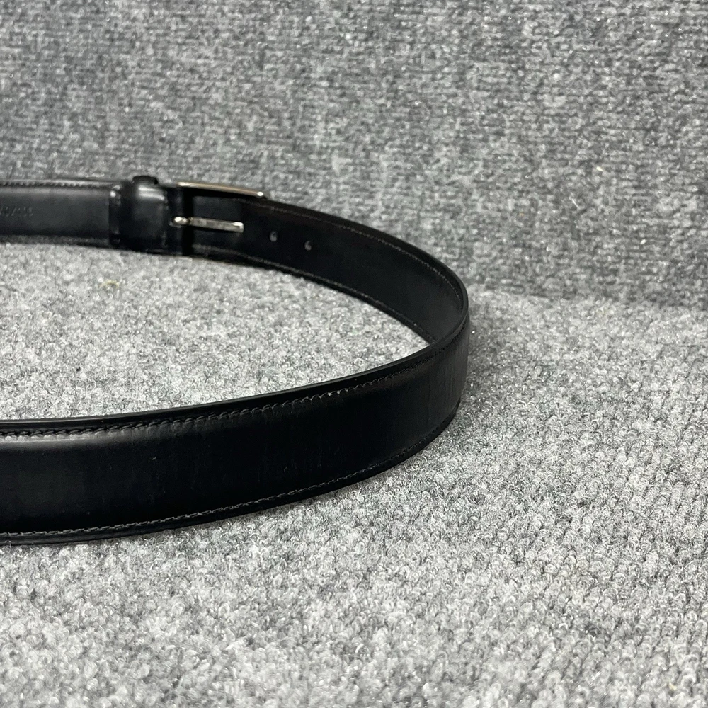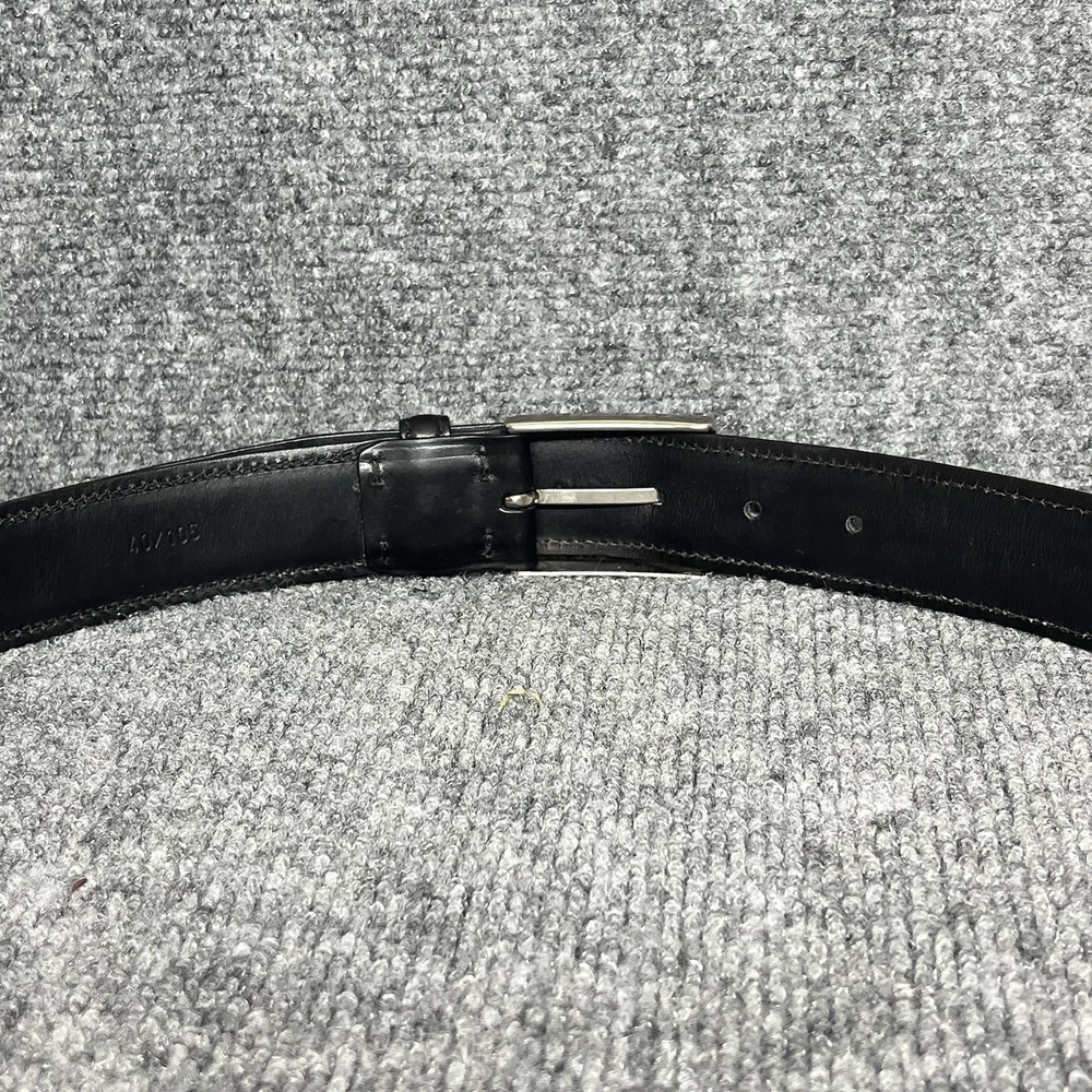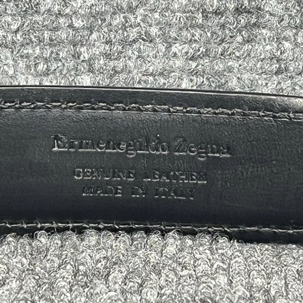 The Ermenegildo Zegna Logo Detailed Buckle Belt in black genuine leather is a luxurious accessory for men. Made in Italy, this dress belt features a high-quality leather material with a solid pattern and logo accents. Designed for a regular fit, this belt in size 40 is a stylish and sophisticated choice for completing any gentleman's outfit.