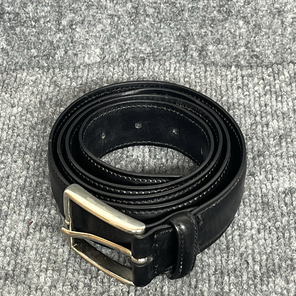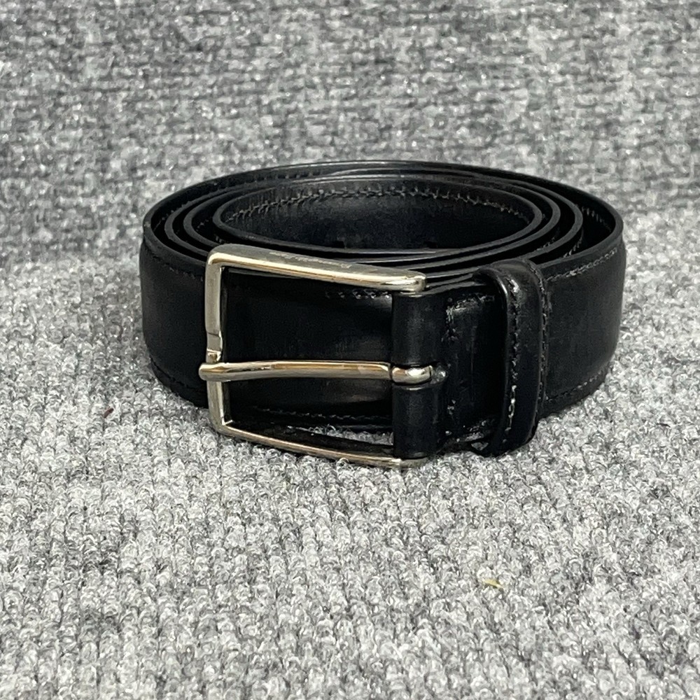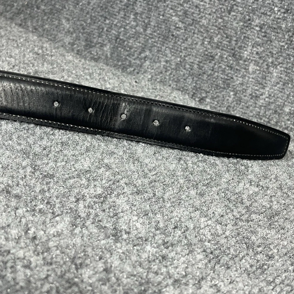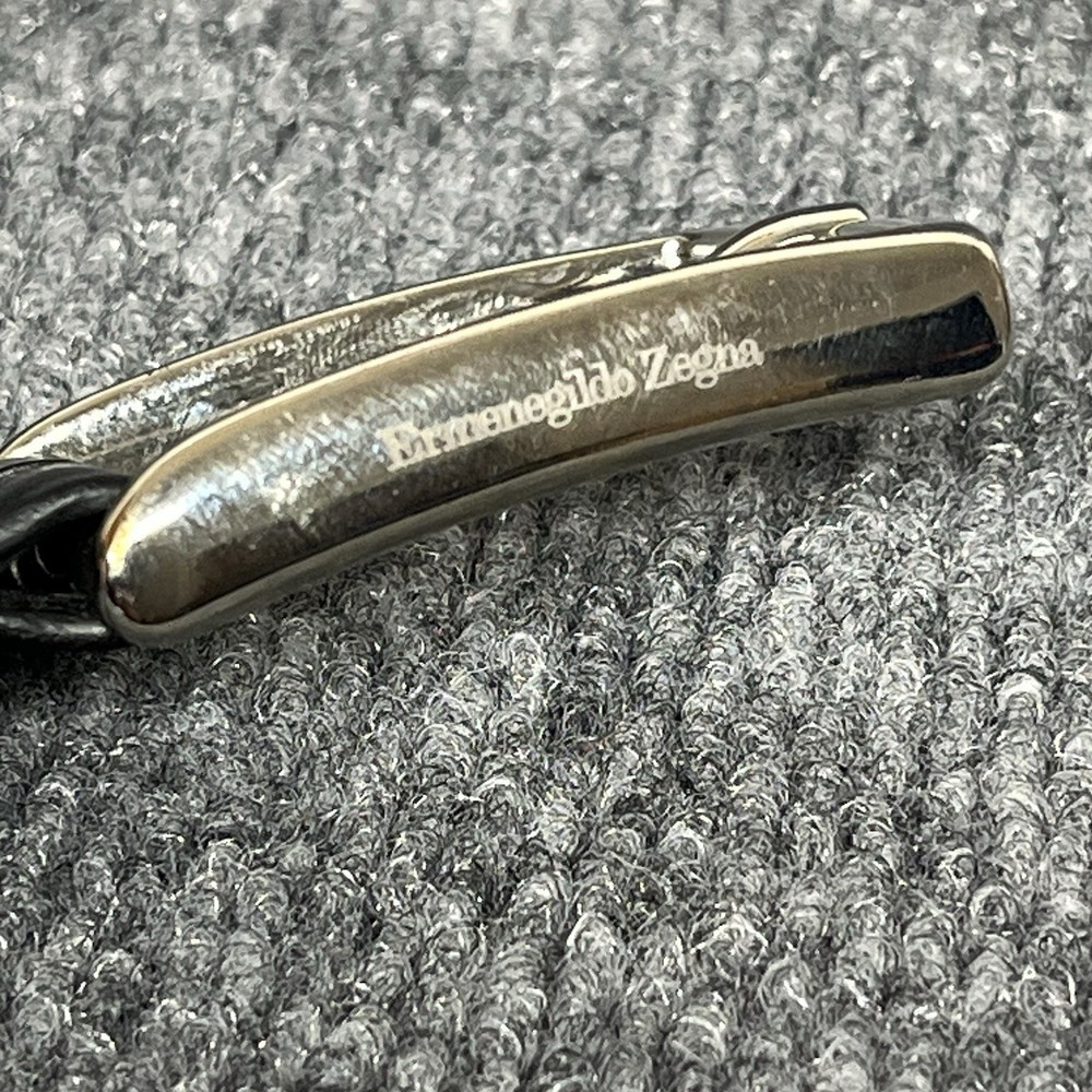 The Ermenegildo Zegna Logo Detailed Buckle Belt in black genuine leather is a luxurious accessory for men. Made in Italy, this dress belt features a high-quality leather material with a solid pattern and logo accents. Designed for a regular fit, this belt in size 40 is a stylish and sophisticated choice for completing any gentleman's outfit.