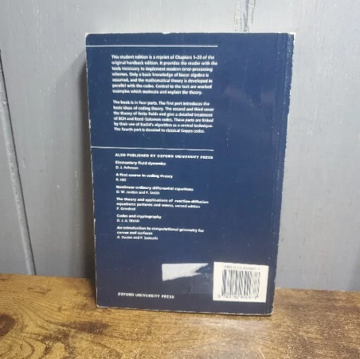 This book is a valuable resource for anyone interested in error-correcting codes and finite fields. Written by Oliver Pretzel and published by Oxford University Press, this textbook is part of the Oxford Applied Mathematics and Computing Science series. It has 356 pages and was published in 1996. The book covers topics such as error-correcting codes, finite fields, algebraic coding theory, and more. It is written in English and comes in a United Kingdom-Trade PAPER format. The ISBN-13 is 9780192690678. Overall, this is a great resource for students and professionals alike who are interested in this subject matter.