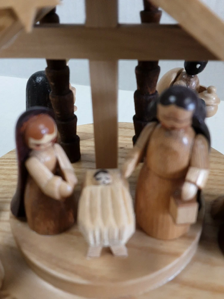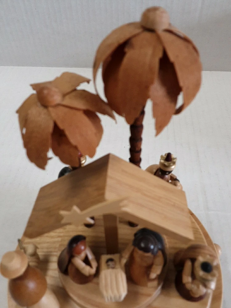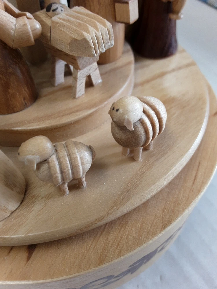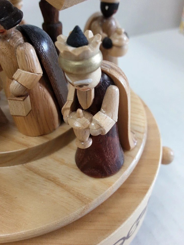 Erzgebirge Expertic Wooden Nativity Music Box Germany Carousel Silent Night
