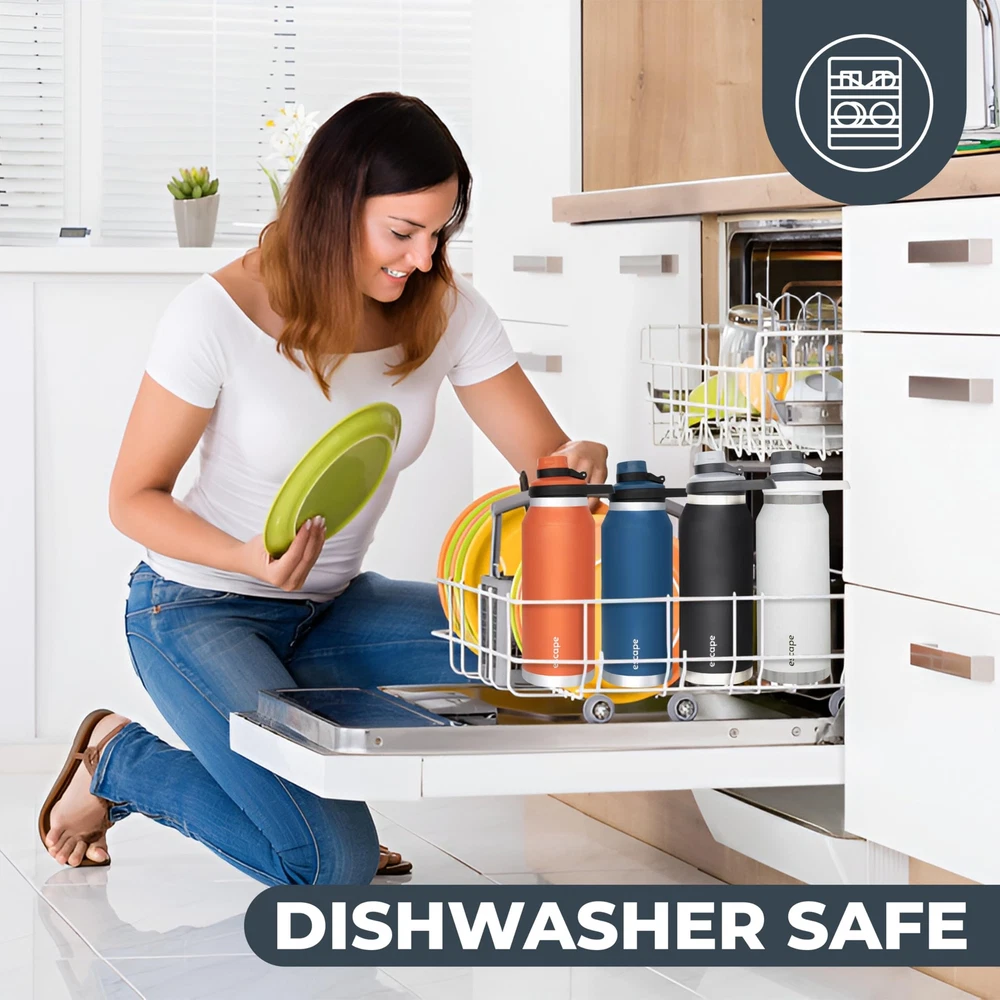 Introducing the 34oz ESCAPE Insulated Stainless Steel Water Bottle! You’ll never go thirsty on your next outdoor adventure with this premium quality water bottle; perfect for camping, hiking, sports, and more. Developed from the leading brands on the market such as any Water Bottle Stainless Steel, you can trust you are getting top-of-the-line quality with Durable 18/food grade stainless steel construction which offers superior temperature retention and an unrivaled durability that is ideal for everyday use. Take your hydration needs anywhere you go; from the gym to work or while exploring nature. This large water bottle provides a large capacity – 34oz – of cold liquid so you can keep hydrated all day long while Reusable construction means no need to worry about single-use plastic waste or constantly repurchasing separate cups. A slim design fits comfortably in most cup holders or saddle bags so you don’t have to sacrifice convenience. Your drink will remain ice cold for up to hours or piping hot up to hours without any condensation due to a leak proof double wall construction, significantly reducing sweat and heat loss. When it comes time to clean up this water cup it's easy: elements like BPA Free Drinkware and Dishwasher Safe Construction makes cleanup a breeze while still protecting against damage or corrosion. Buy now and get your ESCAPE Insulated Stainless Steel Water Bottle today! Let's go! PREMIUM MATERIAL: Crafted from high-quality 18/8 food-grade stainless steel, ensuring both durability and a stylish look. Made for sports, gym, and outdoor activities. This 1 liter (34 oz) metallic water bottle will keep you moving. WIDE-MOUTH DESIGN: allows for easy ice insertion, easy to clean, sweatproof, and dishwasher safe. It also ensures no spills and leak proof, making it perfect for your everyday activities. BPA-FREE and ECO-FRIENDLY: Manufactured BPA-Free, making it safe for both you and the environment. Choosing this reusable water bottle is a healthy and eco-conscious decision. SPORTS INSULATED PERFORMANCE: With its ability to keep drinks hot or cold for hours, keeping them hot for up to 12 hours, cold for 24 hours & icy water for 36 hours. It's perfect for hot summer days and chilly winter outings. SATISFACTION GUARANTEE: This is a high-quality water bottle with no straw, perfect for your everyday routine and even a memorable gift! Which is better than an ESCAPE 34 oz (1L) water bottle that can also be the perfect gift for gym lovers and your closest loved ones?