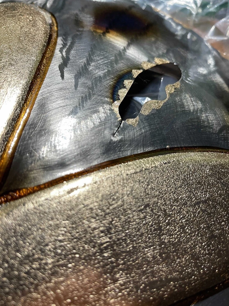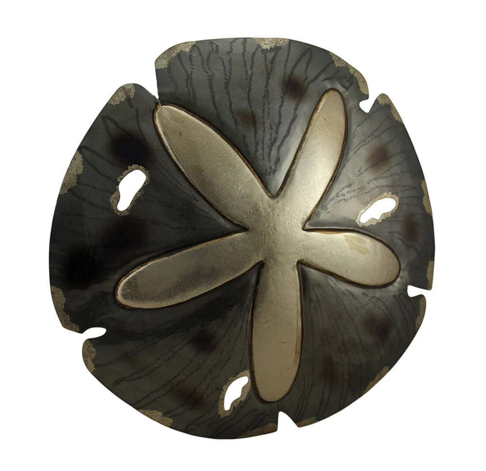 NOTE - DUE TO A SMALL CRACK AND OTHER DEFECTS/SCRATCHES IN THE FINISH this item is being sold at a reduced price. 18 in. Diameter, 2.5 in. Wide Creatively Crafted of Metal in a Unique Coastal Design You'll Treasure on Your Wall Sparkling Metallic Gold Accents On a Glossy Champagne Gold Finish that Gives it a Fresh Out of the Sea Wet Look Delicate Grinder Marks and Cut Outs for an Artistic Hand-Crafted Appearance Our eBay Store About Us Add to Favorite Sellers Sparkling Glossy Metal Sand Dollar Wall Sculpture 18 Inch NOTE: DUE TO A SMALL CRACK AND OTHER DEFECTS/SCRATCHES IN THE FINISH this item is being sold at a reduced price. Please see last photo for damages/defects. NOTE - DUE TO A SMALL CRACK AND OTHER DEFECTS/SCRATCHES IN THE FINISH this item is being sold at a reduced price. 18 in. Diameter, 2.5 in. Wide Creatively Crafted of Metal in a Unique Coastal Design You'll Treasure on Your Wall Sparkling Metallic Gold Accents On a Glossy Champagne Gold Finish that Gives it a Fresh Out of the Sea Wet Look Delicate Grinder Marks and Cut Outs for an Artistic Hand-Crafted Appearance NOTE: DUE TO A SMALL CRACK AND OTHER DEFECTS/SCRATCHES IN THE FINISH this item is being sold at a reduced price. Please see last photo for damages/defects. You love everything about the beach, especially the sand dollars that wash up on the shore, but they're not quite large enough to make a huge impact decorating your home. Well, this metal sand dollar may not have been in the ocean, ever, but its colossal 18 inch diameter size and glossy wet-look finish will give your walls a fresh from the sea, beachy vibe with an artistic side! It's pretty petals are glittery gold in color and surrounded in a champagne gold finish that slightly changes tone in different lighting. Grinder marks create a striped effect, giving it a bit of texture that's pleasing to the eye. It arrives ready to hang to instantly give your home, office, restaurant or lobby area a fresh, new and exciting coastal vibe. Product Details Color Gold Height 18 Length 18 Weight 1.45 LB