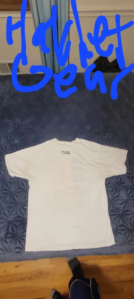 Esham XL White Detroit T-shirt RLP ICP Juggalo Multi-color Natas Hatchetgear. There's some stains in the neck area but not that bad. Also one of the front which I'm sure you can get out with bleach if your careful enough on not getting any on the paint. The printing on the shirt is mint on the other hand. Hate to get rid of this shirt but i need money selling my whole collection. Please help and share to people however you can. Thank you.