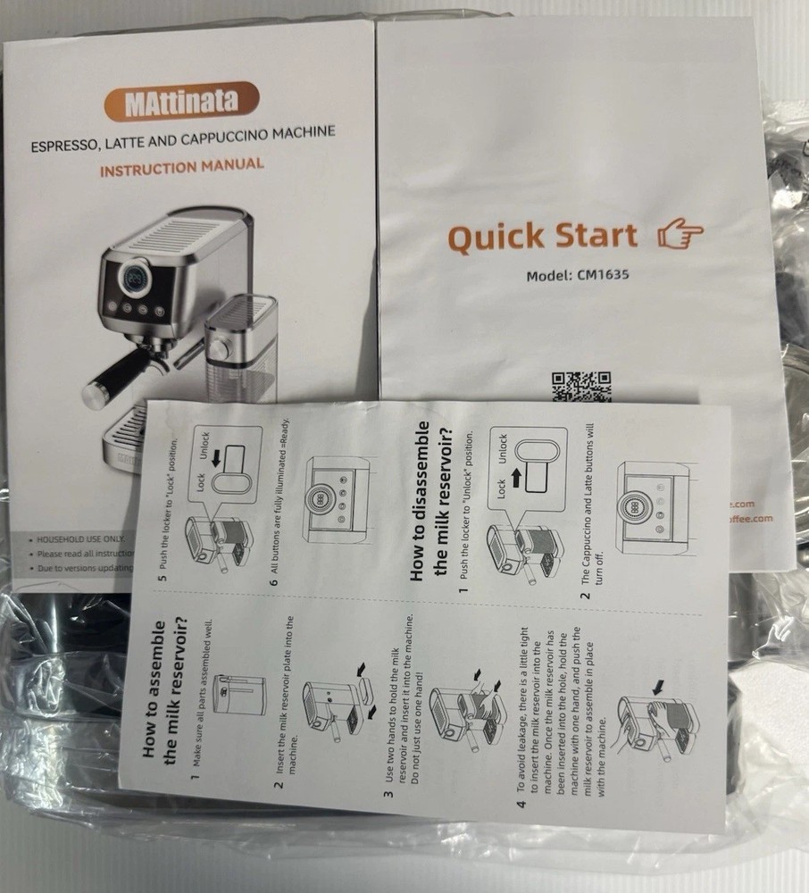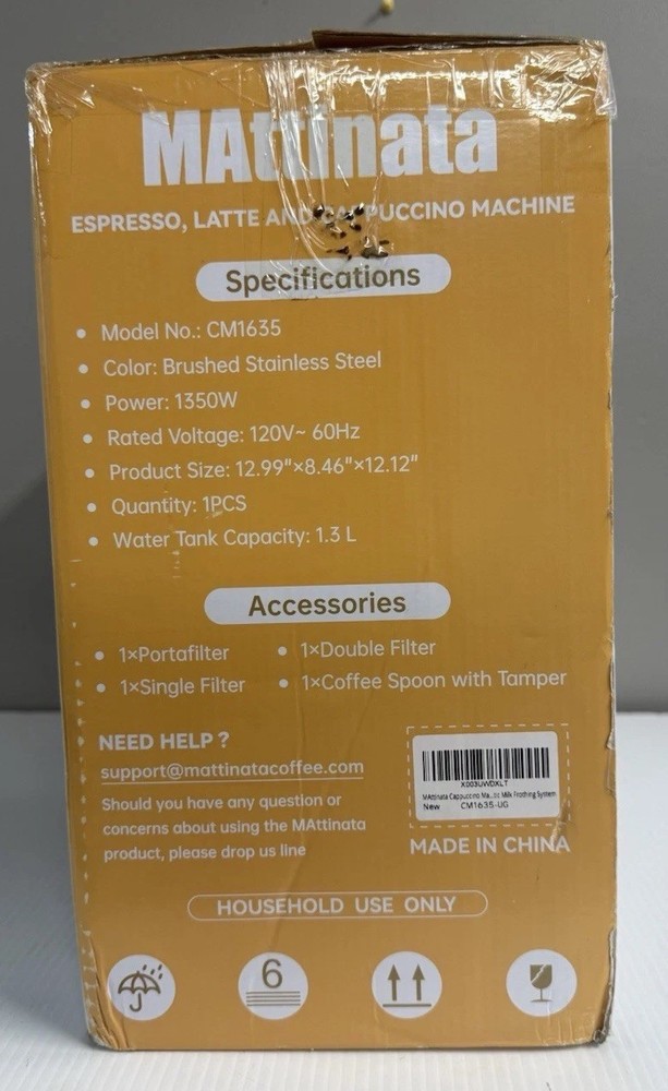 The MAttinata CM1632 Espresso Latte Cappuccino Machine is designed to create delicious coffee beverages at home. With a focus on making lattes, this cappuccino machine is perfect for those who enjoy a smooth and creamy coffee experience. The brand MAttinata ensures quality and reliability in delivering rich espresso drinks with the convenience of having it all in one machine. Whether you're a coffee enthusiast or looking for a simple way to enjoy your favorite coffee drinks, this machine is a great addition to any kitchen.