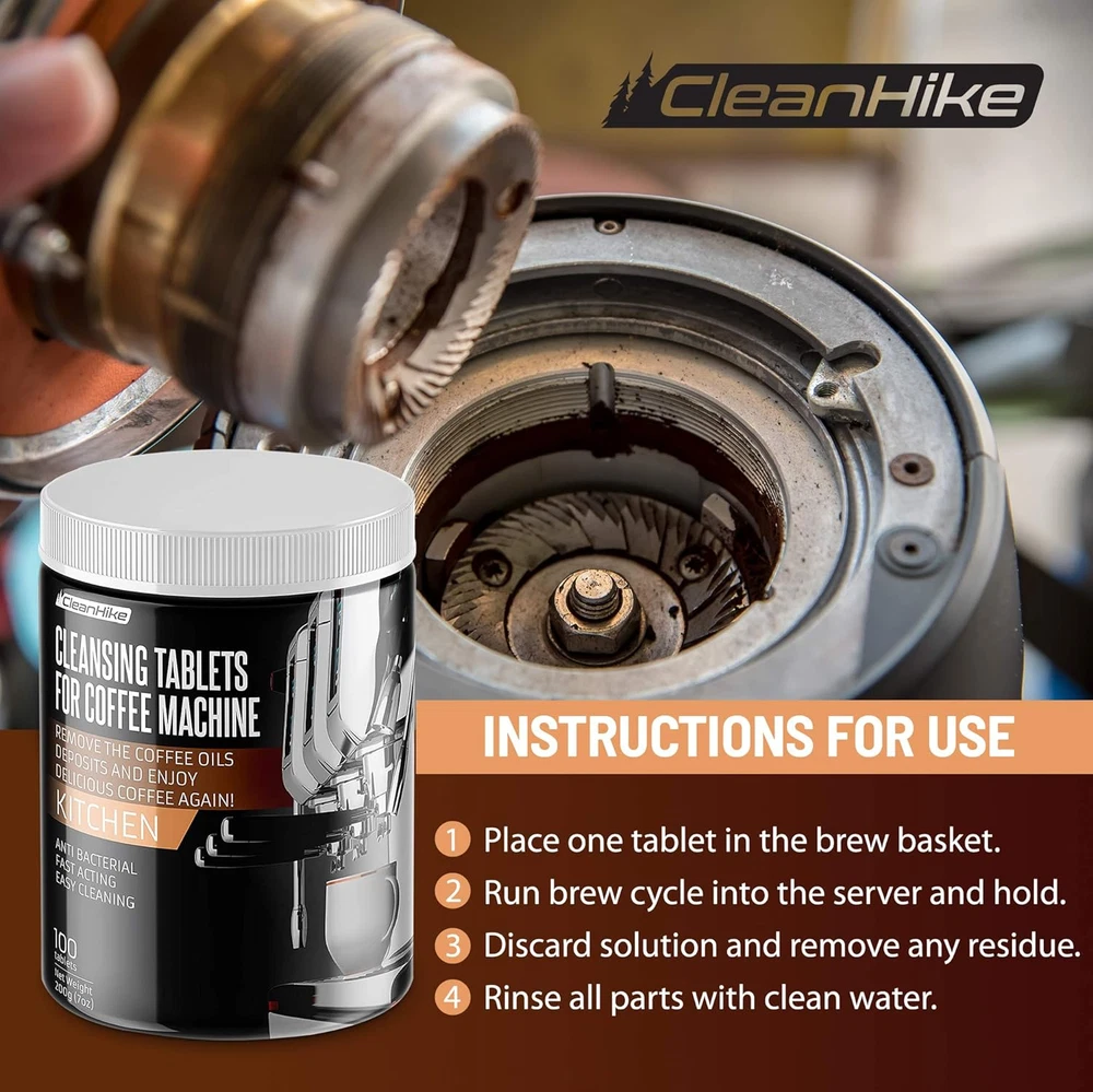 Store New Arrivals Add to Favorite View Feedback Contact Espresso Machine Cleaning Tablets - (100 Tablets) for Jura, Miele, and Universal Description Item Package Quantity 1 Item Volume 500 Milliliters Package Dimensions 4.21 x 3.11 x 2.52 inches Item Weight 10.5 ounces Material Feature Biodegradable, Eco Friendly, Natural Item Form Tablet Specific Uses For Product Coffee Maker Safe and Eco-friendly : Natural, non-toxic ingredient is safe for you and the environment. This biodegradable formula is also chlorine-free, leaving no traces whatsoever. Reliable : 100 powerful tablets created for professional barista use. Effectively removes coffee grease and residue for longer lasting, better performing machines. Take good care of what you use every day- constantly and reliably. Quick and Easy : All you need is 1-2 cleaning tablet, water, and a bit of your time. Just place it in the brew basket, run one cycle, discard, and finish off with a rinse. Economical : Not only are these fast-acting tablets less than 1/10 the price, they can be universally used on any espresso machine, even high-end brands such as Jura, Miele, and more. Get on board with confidence : Your satisfaction is our utmost priority. If you are not fully content with your purchase, please contact us and we'll replace them for a new one or help you access the reimbursement process straight away. Product Description CleanHike Espresso Machine Cleaning Tablets Make Your Espresso Machine Cleaning Simpler Espresso machines are a staple of any barista, but due to its complex structure and millions of parts cleaning can be excruciating! It’s tragic that it cannot be skipped- because it’s critical for keeping the machine at its maximum lifetime and optimal performance. Now, let us take the burden off your hands. What is it? Industrial-strength espresso machine cleaning tablets. Upon contact with water, the tablets release a gentle oxygen fizz that eliminates odor and effectively removes coffee grease to keep machine and its parts clean. How does it work? Eliminate lingering odor and taste Removes stubborn grease and stains Easy Use. No scrubbing needed Maintains cleanliness in hard-to-reach areas Accessible value for everyday use How does it work? In a separate bowl, dissolve 1-2 tablets in hot water to clean filters and group handles Place 1 tablet in the brew basket (2 for extra powerful cleaning) Run brew cycle into the server and hold (Follow the manufacturer's cleaning instructions to avoid damage) Discard solution and remove any residue Rinse all parts with clean water Brew and discard a cup of espresso to make sure no residue remains Start enjoying fresh shots again! Why Our Customers Love Us Quick and Easy Use All you need is a single tablet and some warm water. After running 1 brew cycle, voilá! your espresso machine will be good as new once again. Let the fizz strip away any lingering coffee taste, grease, or any stubborn stains. No-Stress, Accessible Value To keep your espresso machines at its peak performance without breaking the bank, we have prepared an industrial-size and industrial-strength option. Safe and Powerful Formula All of our tablets have passed numerous trials to test their safety and efficacy. We are proud to say that they were proven to be up to standards and that’s why we’re putting them on the market for everyone that could benefit from them. Anywhere, Anytime! Reaches tricky areas Your coffee passes through many parts of the machine that is not visible to the eye nor easily reachable. The formula is powerful enough to remove residue and grease in all passageways that the water passes until it reaches the cup. Restores Fresh Espresso Taste The oily residue can change the taste of the espresso, making it difficult to get the pure flavor of the beans. Clean it after each day to maintain the best-tasting coffee you can brew with your machine. Helps extend machine life Aside from the residue, mineral deposits dissolved in water can accumulate and ruin the heating elements in your machine. Prevent any damage with continuous cleaning and care. Works on all coffee machines The fast-acting tablets can be universally used on all brands of espresso machines, and even on automatic drip coffee makers and single cup coffee makers. Tried & Tested We care for you, and for our planet. Our products are only made up of phamaceutical and food-grade ingredients, carefully crafted and meticulously tested numerous times to make sure that it's safe for both you and the environment. At CleanHike, we continuously strive to bring you the most effective cleaners for the most affordable prices. ABOUT US We offer the best prices around on high quality products. Our E-store includes media such as books, movies, music and games while offering electronics, toys, sporting apparel, clothing, tools, general home, garden items and more. SHIPPING We are always working hard to ensure your package arrives as soon as possible. Please understand that some factors like weather, high postal traffic, and the performance of shipping companies are outside of our control. We offer free shipping to the lower 48 states and ship within 5 business days of payment, usually sooner. We do not accept P.O. Boxes. Please provide a physical address. RETURNS We offer a 30-Day Return Policy on items which you are not completely satisfied with. You have the option for a full-refund or an exchange of the item. No returns are available on items shipped outside of the USA. PAYMENT We accept PayPal. CONTACT US This page content is yet to come Please ad us to your favorite seller and visit again later Thank You CUSTOMER SATISFACTION We try our very best to make sure every customer is completely satisfied. If there's a problem, message us! We're happy to help.