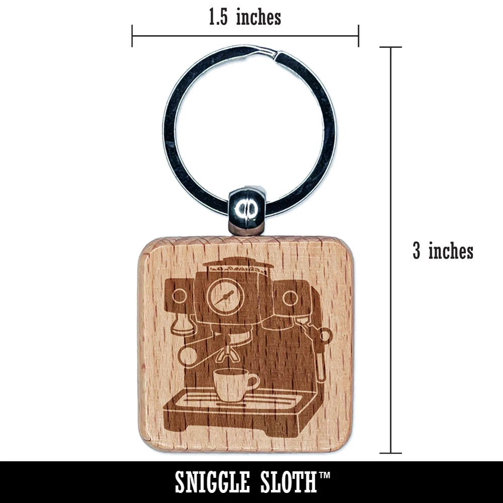 Espresso Machine Coffee Engraved Wood Square Keychain Tag Charm