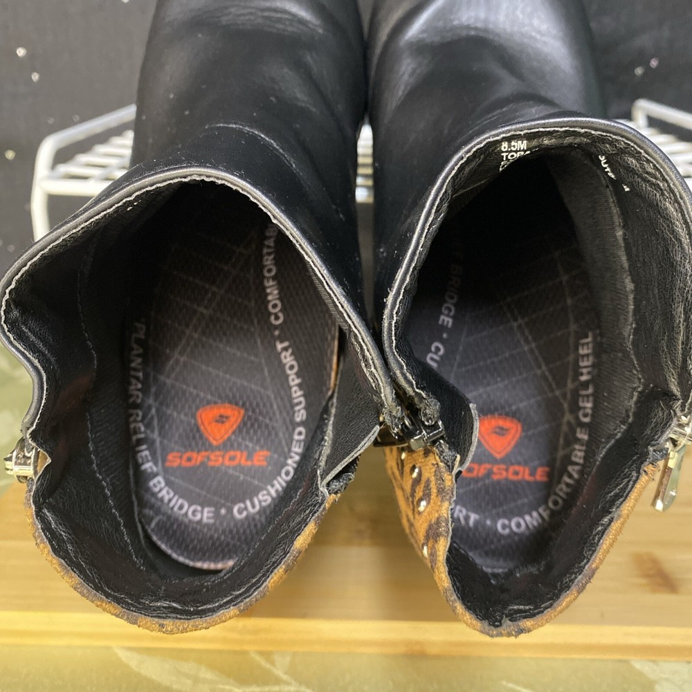 $ 60.72Steve Madden West Black Leather Western Boots Block Heel Size 8.5