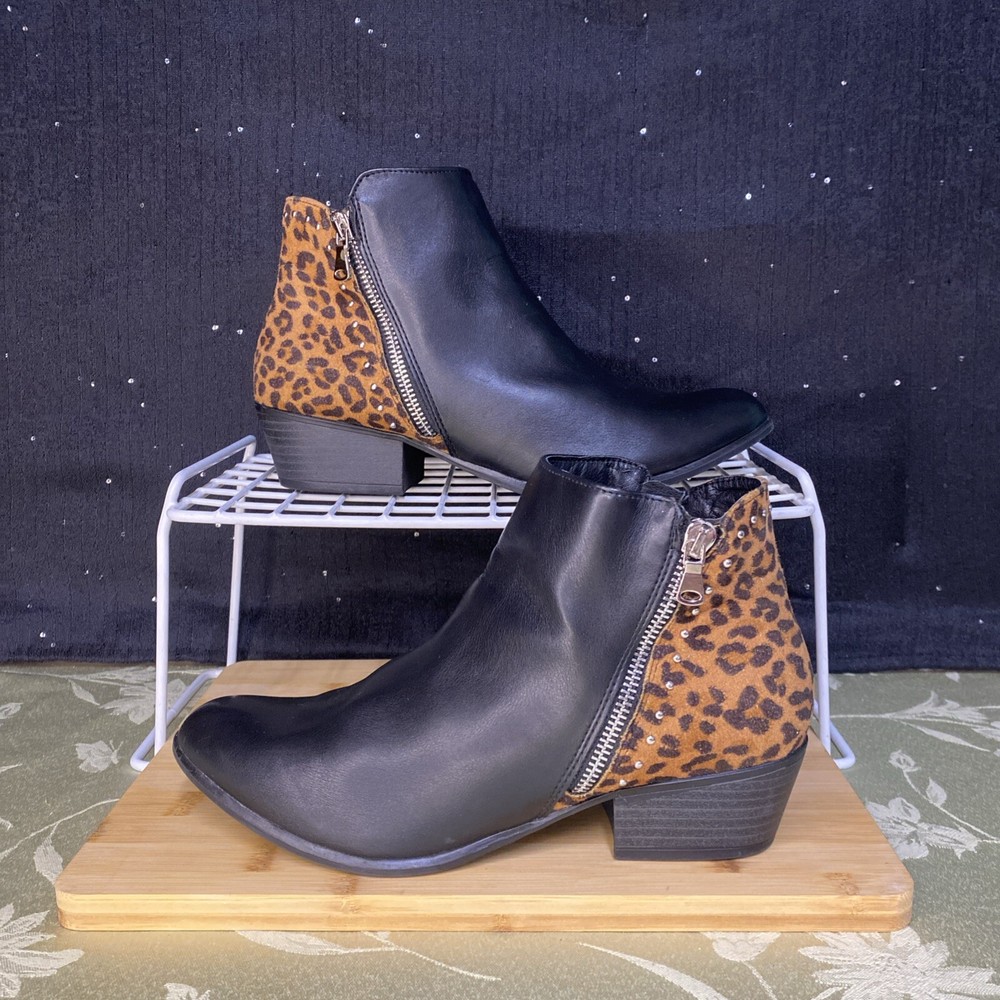 Pre-owned Esprit Women's Size 8.5 Topaz Black Zipper Studded Sides, booties in excellent condition. Sold as is. Feel free to make an offer! Shoe-003