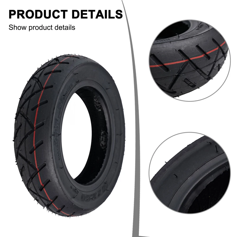 Essential Accessories 10X2 50 Electric Scooter Inner tube and Outer tyre DESCRIPTION Warn ing: It is illegal to ride electric scooters on public roads, pavements, or cycle paths. They are intended only for use on private land with the owner's permission Description: * brand new and high quality *Made of high quality material, practical to use *10X2.50 tire, excellent replacement applications that use same tire size. Specification: *Material: Rubber *Color: Black (As Pictures Show) *Weight: About 110g(inner)/640g(outer) *Model: 10X2.50 Package Includes: 1 x inner tube or 1 x outer tyre or 1 x inner tube+ outer tyre Note: 1. The real color of the item may be slightly different from the pictures shown on website caused by many factors such as brightness of your monitor and light brightness. 2. Please allow slight manual measurement deviation for the data. POLICES Shipping Payment WARRANTY We only ship to confirmed ebay Order addresses. Please comfirm that your Order address is in line with your shipping address. Please kindly note that the c ombined shipping is not provided because the shipping fee is calculated by weight. Also, the each additional item means exactly the the same color and size. It takes about 7 -15 working days to US; about 10-30 working days to other countries. Transit time may be a little delayed because of the bad weather and customs inspection . If you do not receive your item within 30 working days since payment finished, please contact us immediately for further assistance. Payment must be completed within 5 days. If you have any problems about payment, please contact us via ebay message. We strive for 100% customer satisfaction! Positive Feedback is very important to us. If you have any questions, p lease feel free to contact us via "Ask seller a question" . We will reply your email within 24 working hours.