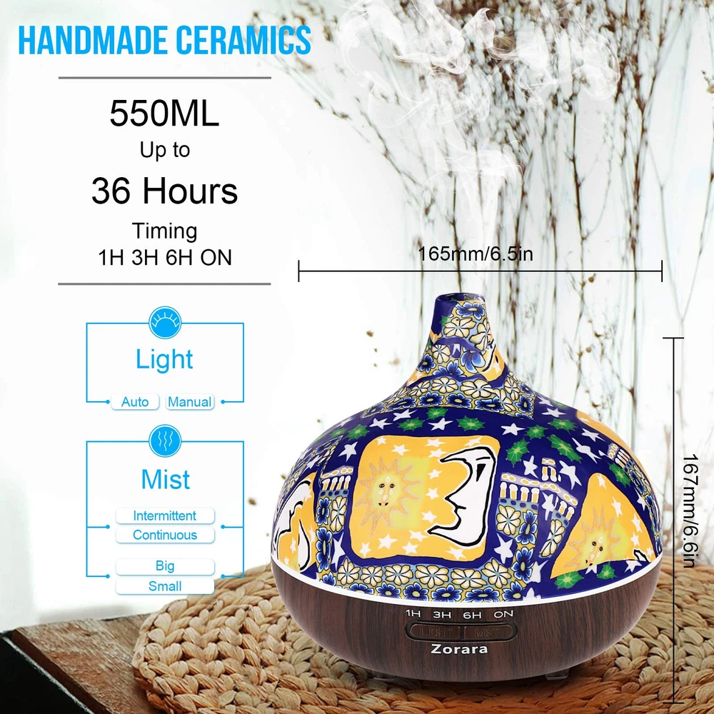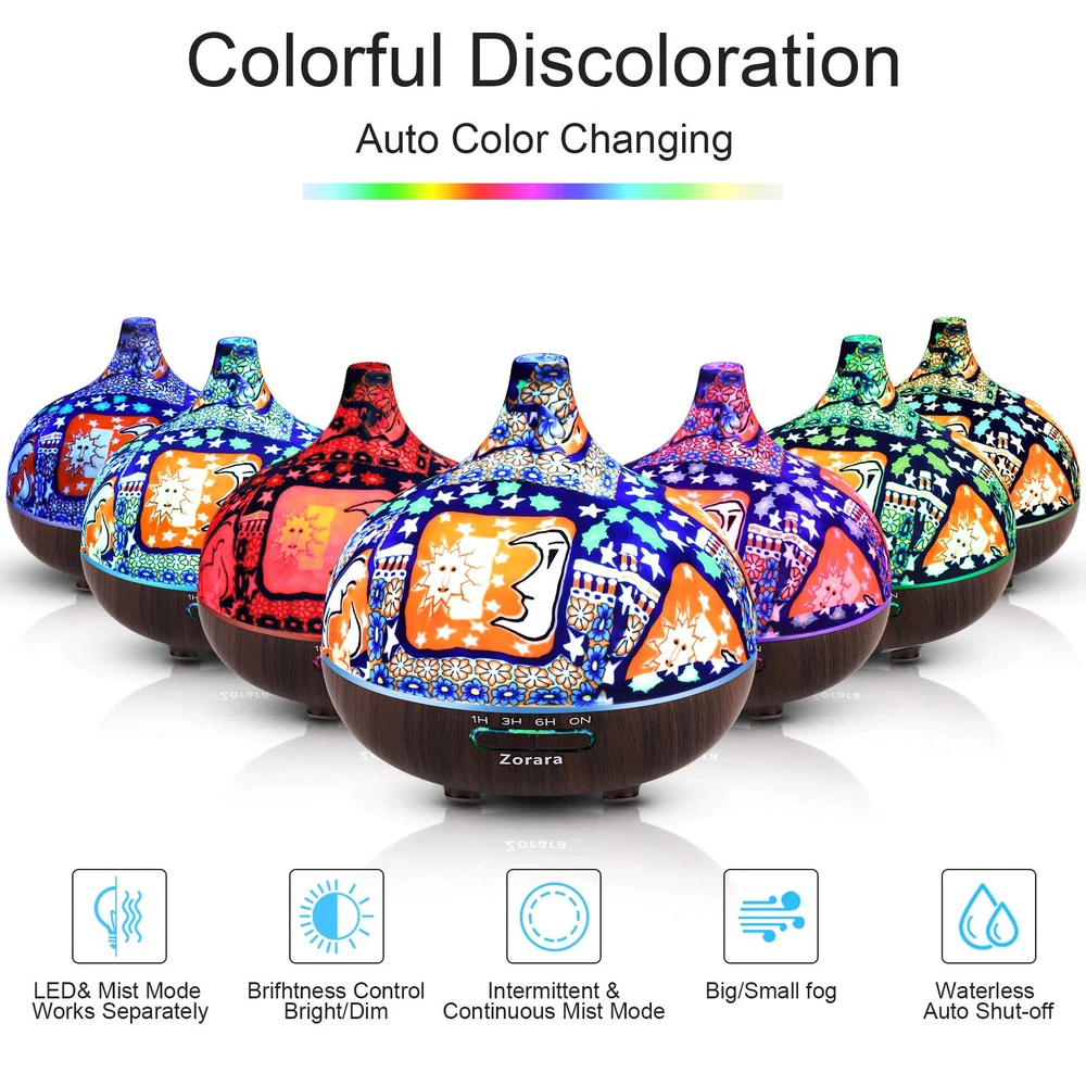 ♨ Galaxy 3D diffuser ♨ This essential oil diffuser also functions as a night light. Night light & humidification function can be turned on separately.Atomization produces water mist, which can remove the dust in the air to purify the air, increase the humidity of the air, nourish the skin and our home's atmosphere quality. ♨ 7 Changing LED Lights & Remote Control - The essential oil diffuser is rotated to 7 gradient color automatically or fixed on one color light, could set the dim or bright color. Creating you a calm and soft atmosphere while you are working, relaxing, sleeping, spa, yoga, salon, bedroom, office. You can control with the remote control (include) when you in bed. ♨ 2 Mist Modes & Timer Control - Our aromatherapy diffuser's capacity is 550ml which can last 18 -36 hours. Refreshes and moisturizes the air for rooms of 25 - 60 m². And it can choose strong or low mist, or interval(30s on and 30s off) mode. 4 timers for you(1H/3H/6H/ON), It means that you can control the working time. ♨ Safety & Waterless Auto Shut off - BPA free material with hand made glass cover, It’s safe for children and the pregnant. Safety devises inside which will be shut off when the water tank is empty. Of course, it also can be used as a small decoration, especially creates a romantic atmosphere. ♨ Creative & Practical Gift Idea - 550ml 3D affect large tank glass humidifiers is exactly what you are looking for your family and friends. Besides, you can also use it as a stunning night light. Smooth the pressure, balance mood, especially creates a romantic atmosphere and relieve the winter dryness effectively. It is a very good Christmas idea & household gifts.