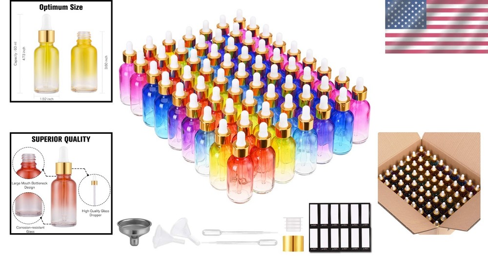 Essential Oil Storage Made Easy - 63 Pack 2oz Leakproof Rainbow Dropper Bottles ‹ › ‹ › ‹ › ‹ › ‹ › ‹ › ‹ › ‹ › ‹ › Essential Oil Storage Made Easy -63 Pack 2oz Leakproof Rainbow Dropper Bottles Experience the Essence of Quality: Quality Eye Dropper: Designed with a length of 4.1 inches, our glass pipettes are longer than standard models, ensuring that not a single drop of your precious oils goes to waste. Plus, they're thicker for added durability. UV Resistant: Crafted from corrosion-resistant Rainbow glass, our bottles are both BPA and lead-free. The UV-resistant properties ensure that your essential oils and perfumes are protected from harmful rays and rapid evaporation. Perfect for Aromatherapy Enthusiasts: Versatile Usage: Ideal for filling essential oils and creating personalized blends for massage, hair salon, or aromatherapy. Immerse yourself in relaxation and rejuvenation. Leaking Proof Design: Featuring a screw thread finish and an attractive golden plated aluminum cap, our bottles provide a secure fit that prevents any unwanted liquid leakage, keeping your oils safe. Complete Your Essential Oil Experience: Additional Accessories: Along with the bottles, you will receive 12 funnels and 10 measured pipettes, making it a breeze to refill your essential oils. Plus, enjoy 120 stickers for easy labeling and organization of your precious blends. Why Choose Our Rainbow Dropper Bottles? Transform the way you store your essential oils with our leakproof and beautifully crafted glass bottles. Designed to protect your valuable oils against UV degradation while offering ease of use, they're perfect for both enthusiasts and professionals alike. Enhance your aromatherapy experience and bring a touch of elegance to your oil storage. Order your Essential Oil Storage Set today and discover a vibrant, organized, and efficient way to enjoy your essential oils! Shipping Free & Fast Shipping - We offer free shipping to most of the USA with a normal delivery time of 3-7 days. However, due to the current situation, additional delivery time (up to 3 weeks) may be required for some items. Alternative Carriers - We may use alternative carriers (e.g. USPS, FedEx, UPS, etc.) to ensure your package arrives safely and on time. Due to the use of multiple carriers, we are unable to provide a tracking number automatically. Handling Time - Orders are processed and shipped within 1-2 business days of receiving cleared payment. Shipping Restrictions - Shipping to Alaska, Hawaii, Puerto Rico, Guam, and other US territories may incur shipping charges or delivery restrictions. Please contact us before ordering, or your order can be refunded/cancelled. State Restrictions - There may be restrictions based on your state of purchase. For example, certain items may not be shipped to California due to state regulations. Contact for Tracking Updates - If you require tracking updates or have any concerns about the delivery of your order, please feel free to contact us, and we will be happy to assist you. Return 30-Day Hassle-Free Returns - We want you to be completely satisfied with your purchase. If you are not, you can return the item within 30 days of receiving it for a full refund or exchange. Easy Return Process - To start a return, simply contact us and we will provide you with a prepaid return shipping label and detailed instructions. Restocking Fee - There are no restocking fees for returns. However, the buyer is responsible for return shipping costs if the return is not due to a seller's error. Refund Processing Time - Refunds will be processed within 5 business days of receiving the returned item in its condition. Payment We accept all major credit cards, PayPal, and Apple Pay for your convenience. Your payment information is secure and encrypted to ensure a safe and seamless transaction. Please complete your payment within 3 days of purchase to avoid any delays in shipping. Feedback Your feedback is extremely important to us. We strive to provide the best products and customer service possible. If you are satisfied with your purchase, please take a moment to leave us a positive review. If you have any concerns or issues with your order, please contact us before leaving negative feedback. We are committed to resolving any problems and ensuring your satisfaction. Contact Us If you have any questions or concerns, please feel free to out to our customer support team. You can contact us through the eBay messaging system. We are available Monday to Friday, 9:00 am to 5:00 pm EST, and we will do our best to respond to your inquiry within 24 hours. Buy it now and enjoy a pleasant shopping experience! Unit Quantity: 63 Scent: Assorted/Mixed Container Type: Glass Bottle Material: Glass Features: Eco-Friendly,Leakproof Type: Dropper Bottle Number in Pack: 63 Color: Multicolor Number of Settings: 1 For: Essential Oils Item Weight: 10.54 lb Volume: 2 fl oz Style: Modern Installation Area: Indoor Power Source: None Item Diameter: 1.52 in Humidity Control: No Era: Unknown