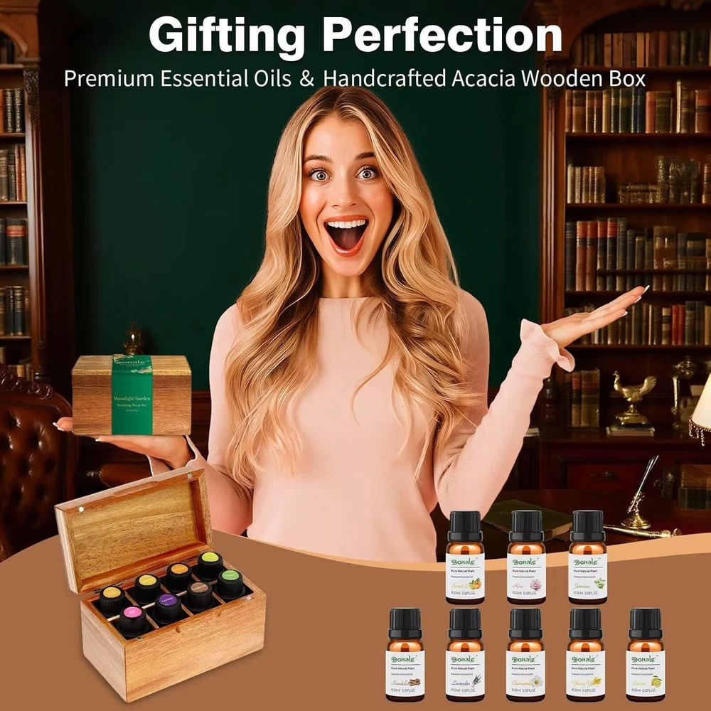 Essential Oils Kit w/Wooden Case Top Grade Fragrance Oils for Daily Aromatherapy