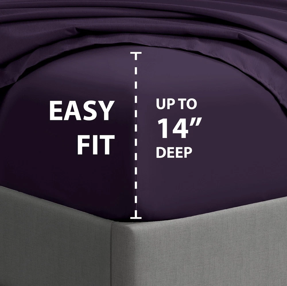Composed of 100% polyester double brushed yarns for a crisp ironed look that is resistant and remain soft to the touch. Durable and long lasting, our ultra-thin sheet set comes in an array of neutral and vibrant colors that will not fade or shrink with every wash. You'll feel comfortable sleeping on them all night long. WHAT’S INCLUDED - Twin Set Includes: 1 Fitted Sheet 39" x 75", 1 Flat Sheet 66" x 96", 1 Pillowcase 20" x 30". WHY WE LOVE THESE SHEETS: Whether curling up with a good book or drifting off to dreamland, our sheet set will provide the perfect touch of relaxation and style to your sanctuary. These luxurious, durable sheets are crafted from 100% microfiber polyester and double brushed for amazing softness to pamper you all night long and for years to come. Available in a wide range of vibrant colors, you can add a pop of personality to your bedroom while enjoying blissful sleep. *Microfiber is an umbrella term for ultra-fine synthetic fibers that are commonly made from polyester and polyamide. *Please bear in mind that due to the difference in lighting and monitor settings, the color of the actual product may vary slightly from what you see on screen. EASY FIT - The fitted sheet is fully elasticized with extra strength elastic and can easily accommodate mattresses between 10" - 14” thickness for a snug fit. EASY CARE - and fade resistant, these sheets are machine washable - cold with like-colors - and quick drying for easy care. OEKO-TEX CERTIFIED - Tested and certified to be free from harmful chemicals, the sheets meet high safety standards.