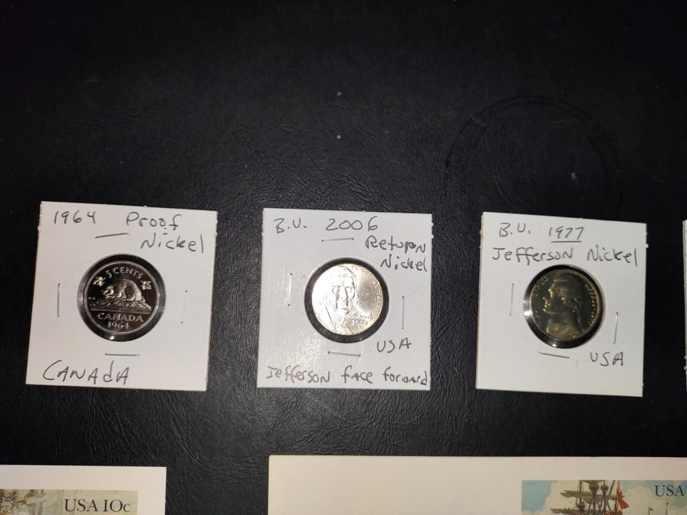 No gimmicks no junk just nice coin You get everything in pictures , see pictures you like to combine shipping just let us know we'd like to save you as much money as possible SEE PICTURES YOU GET EVERYTHING WE ACCEPT PAYPAL AND CREDIT CARD PAYMENTS You get everything in pictures ! This auction is for everything in pictures have a look see so you know exactly what your going to get...thanks All you're single individual coins will come in brand new unused coin folds 2005 United States Denver 11 coin mint set including Sacagawea dollar Kennedy half dollar two Westward journey Nickels plus five state quarters the set includes certificate of authenticity and original envelope 1935 full date Buffalo nickel usa World war II 1943 steel wheat penny usa Extra large signature sealed tops baseball card Two Flint arrowheads various colors Dinosaur fossils unused postcard Three civil war postcard with original postage unused mint condition very cool collectors see pictures 1985 United States 12 coin mint set including two Kennedy half dollars two Washington quarters two Jefferson Nickels two Roosevelt times and two Lincoln pennies This settles includes the original certificate of authenticity and envelope Brilliant uncirculated 1957 Denver wheat penny Brilliant uncirculated 2005 ocean in view westward journey nickel Brilliant uncirculated 2009 Life of Abe Lincoln pro-life penny Brilliant uncirculated 2004 piece nickel Western journey edition Brilliant uncirculated 2009 formative years of Abraham Lincoln penny Circulated old wheat penny Brilliant uncirculated 2009 Puerto Rico quarter 1964 proof Abraham Lincoln penny beautiful condition 1964 proof Canada nickel Brilliant uncirculated 2006 Jefferson return nickel forward-facing Brilliant uncirculated 1977 Jefferson nickel Brilliant uncirculated 1960 Denver Jefferson nickel 2012 proof like Canada cent uncirculated very nice condition This is the last year Canada printed a 1 cent coin this auction is for everything in pictures have a look-see so you know exactly what you'll get YOU GET EVERYTHING SEE PICTURES YOU GET EVERYTHING IN PICTURE ANY QUESTIONS OR PROBLEMS PLEASE CONTACT US WE LIKE TO PROVIDE EXCELLENT CUSTOMER SERVICE WE WILL COMBINE SHIPPING = JUST LET US KNOW