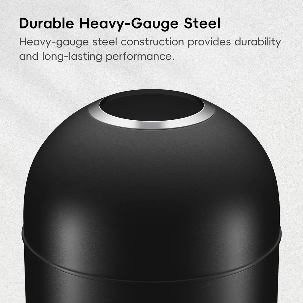 Ideal for High-Traffic Areas: With a generous 15-gallon/56-liter capacity and an open-top design, this sleek and sturdy steel trash can is perfect for both indoor and outdoor commercial spaces, including homes, coffee shops, hotel lobbies, and restaurants. Convenient Wide Open Top: Dispose of garbage without touching the can. The dome shaped open top makes disposal easy while concealing trash away from view. Built to Last: This commercial garbage can is made of thick, heavy-gauge powder-coated steel, which gives it remarkable resilience to wear and tear over time. Classic Silhouette: Featuring a sophisticated, timeless design and a versatile dome-shaped open top, this commercial garbage can adds a touch of style to any setting. Effortless Lift-Off: Outer shell easily removes to access the metal inner liner for quick bag changes while keeping excess trash bag and garbage out of sight. Easy Cleaning: The commercial trash can features an anti-fingerprint, smudge-proof finish, making it incredibly easy to maintain. Simply wipe it with a damp cloth to keep it looking pristine.