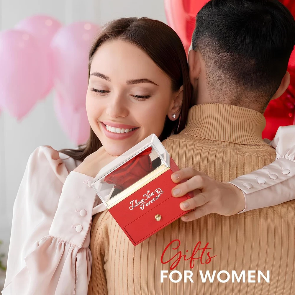 This stunning preserved red rose is the perfect symbol of eternal love—beautiful, elegant, and long-lasting. The hidden "I LOVE YOU" necklace in 100 languages adds a sweet, romantic surprise, making it an unforgettable gift for any special woman in your life. Ideal for Valentine’s Day, anniversaries, or birthdays, it’s a heartfelt keepsake she’ll treasure forever!
