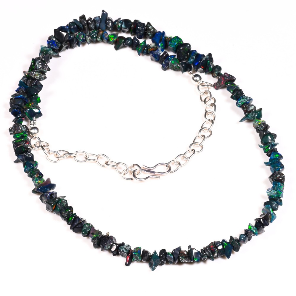 This stunning black opal necklace is a true showstopper! The Ethiopian opal chips shimmer with mesmerizing play-of-color, and the 22-inch length drapes beautifully. The natural stones have rich black hues with vibrant flashes, making each piece unique. Lightweight yet eye-catching, it’s perfect for adding elegance to any outfit. The craftsmanship is excellent, and the opals feel durable for everyday wear. A must-have for jewelry lovers who appreciate earthy, luxurious details!