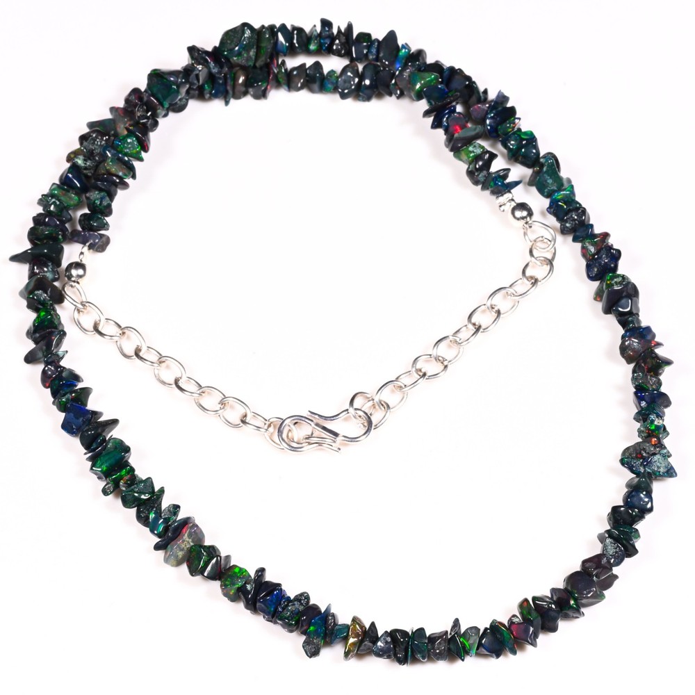 This stunning necklace is a true statement piece! The natural Ethiopian fire opal chips sparkle beautifully with every movement, and the 22" length drapes perfectly. The black stones add an elegant contrast, making it versatile for both casual and formal wear. The craftsmanship is excellent, and the weight feels luxurious without being heavy. A must-have for anyone who loves unique, eye-catching jewelry!