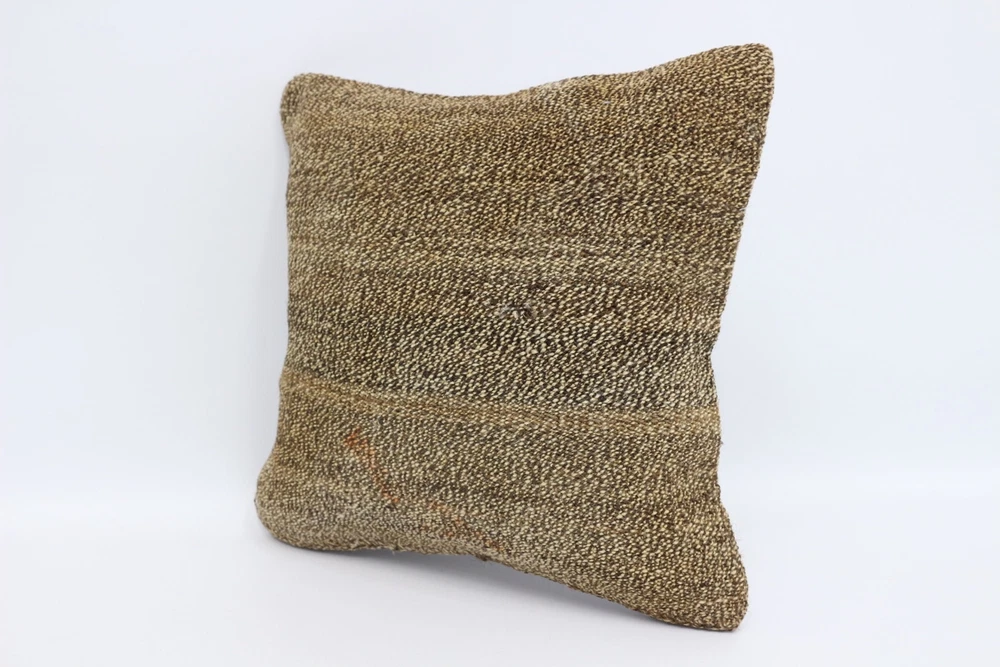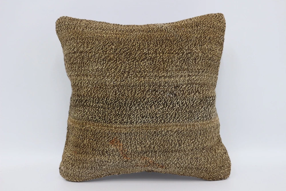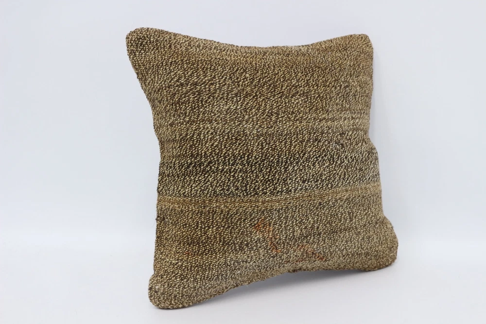 Ethnical Kilim Rug Pillow, Throw Kilim Pillow, 14"x14" Brown Pillow Case