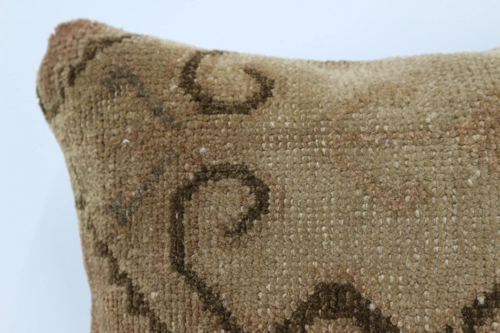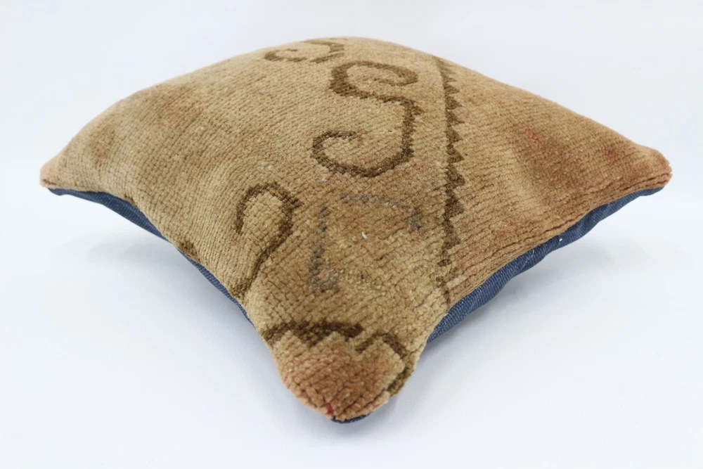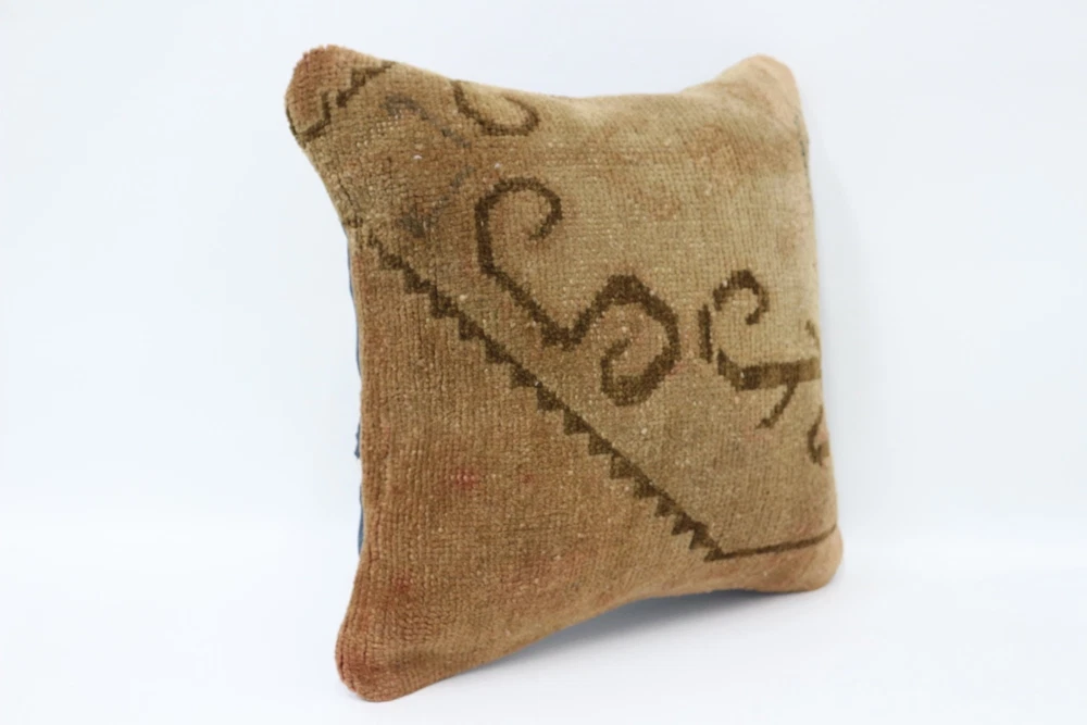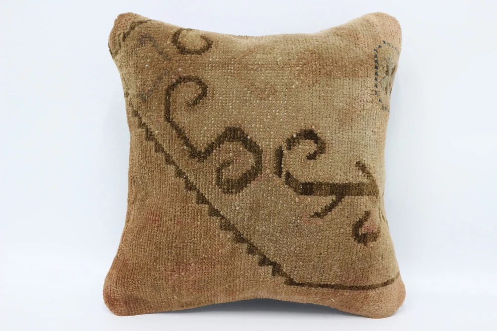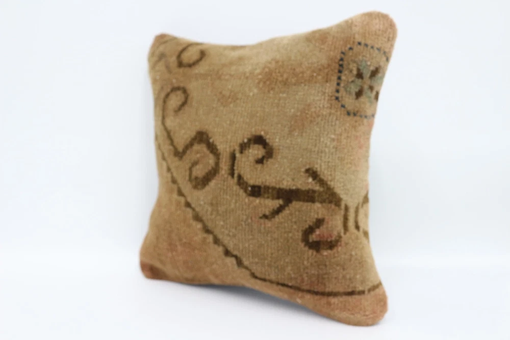 Ethnical Kilim Rug Pillow, Turkish Pillow, 14"x14" Beige Cushion Cover