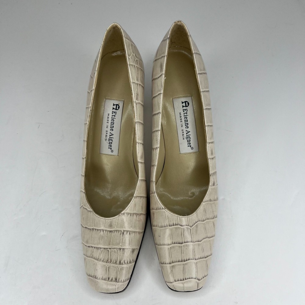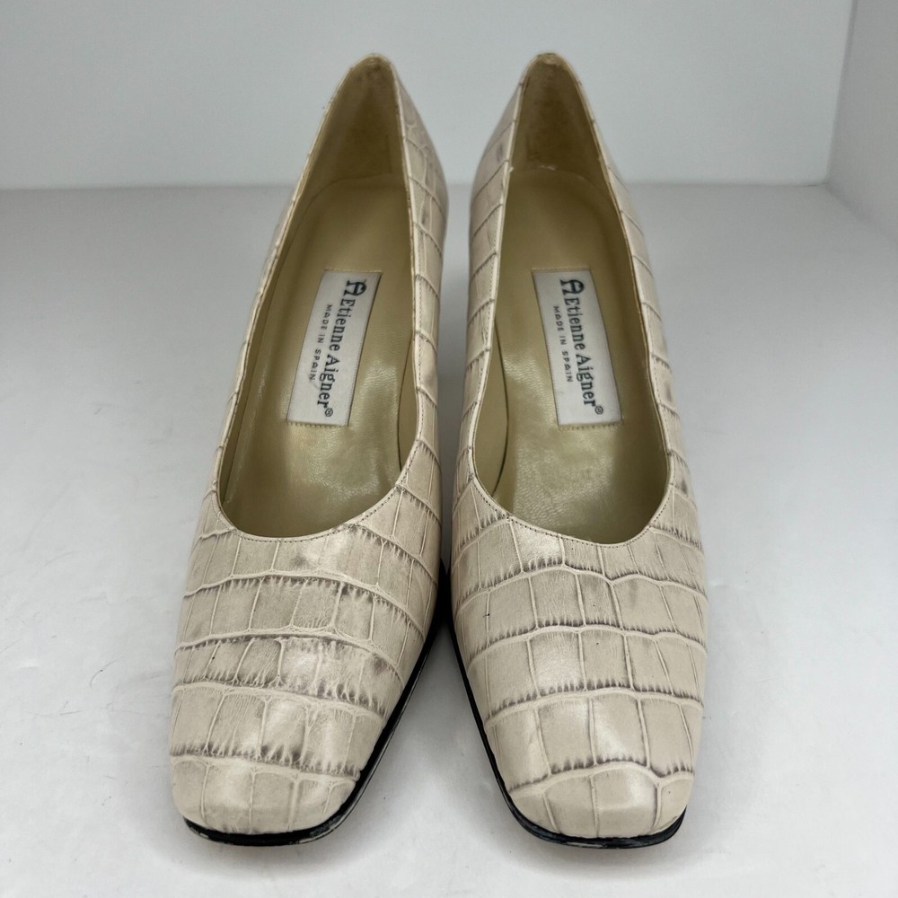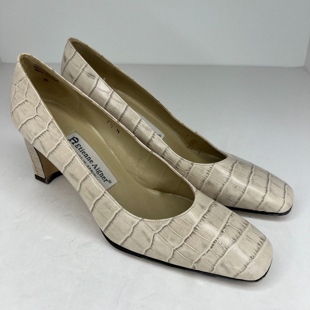 Elevate your style with these Etienne Aigner women's pumps in Taylor Valencia. The faux croc leather material is accented with a trendy animal print pattern, making them perfect for any fashion-forward woman. The slip-on closure and square toe shape provide comfort and convenience, while the mid-height block heel adds a touch of sophistication. These pumps are ideal for any season, whether it's winter, summer, fall, or spring. The leather lining, insole, and outsole materials ensure durability and quality. With a UK shoe size of 5 and a US shoe size of 7.5, these pumps are a great addition to any wardrobe. 100% CUSTOMER SATISFACTION IS OUR GOAL! Our items are always carefully examined for condition, measured if necessary, and photographed in a climate controlled and smoke-free environment. We make every attempt to accurately describe and clearly picture the items we have for sale. Please, ALWAYS view all of the photos. We value your business and our goal is your complete satisfaction. FAST SHIPPING All items are packaged with care and shipped out the same or next business day via USPS, FEDEX, or UPS with tracking numbers so you are always informed. RETURNS We offer a 30-day return policy. All items must be unused and unopened in the condition in which they were received, with original packaging, and all accessories included for return. REVIEWS - CUSTOMER SATISFACTION - COMMUNICATION We aim to make you happy. After you receive your shipment, please leave a positive review . If you have concerns or questions about your order, please contact us so we can resolve the issue. We will do our best to make you satisfied. THANK YOU FOR YOUR BUSINESS!