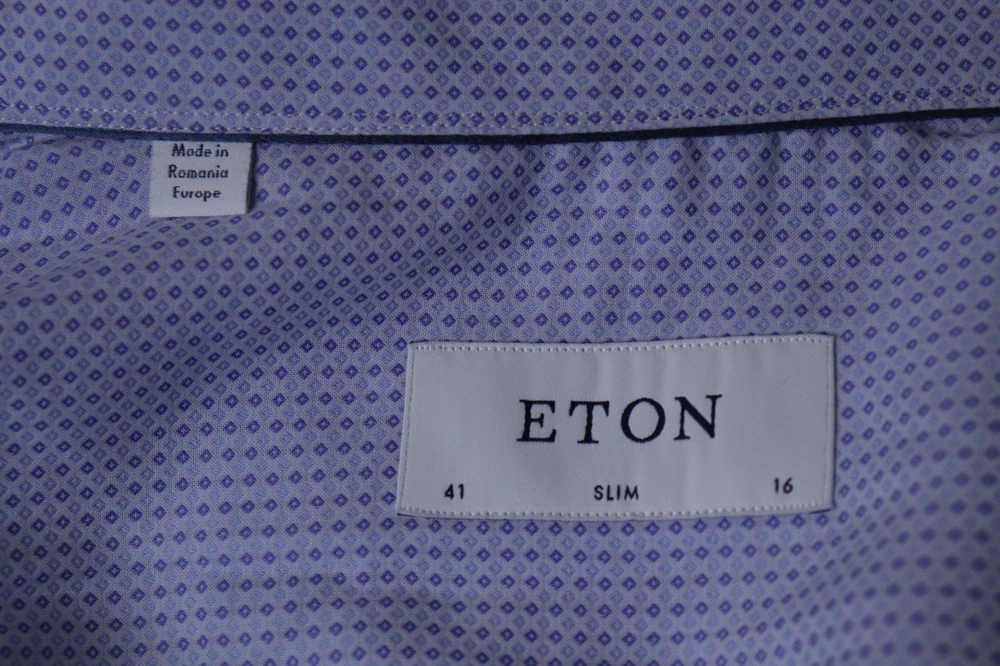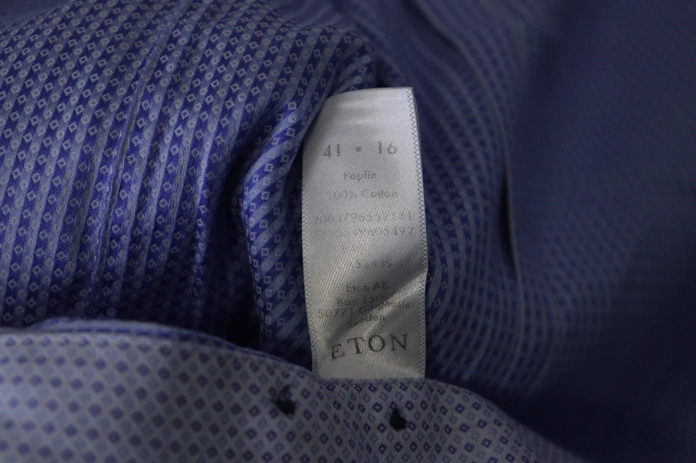 Eton Slim Blue Geometric Long Sleeve Collared Button Up Dress Shirt Size 41 / 16