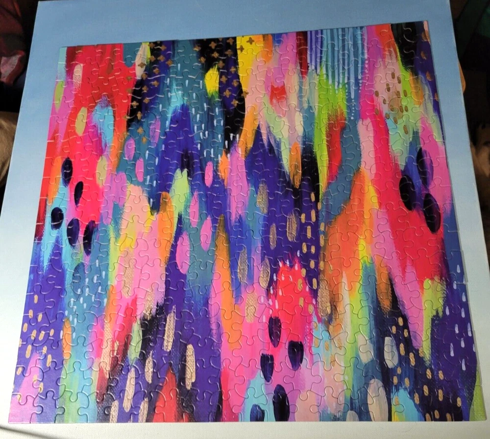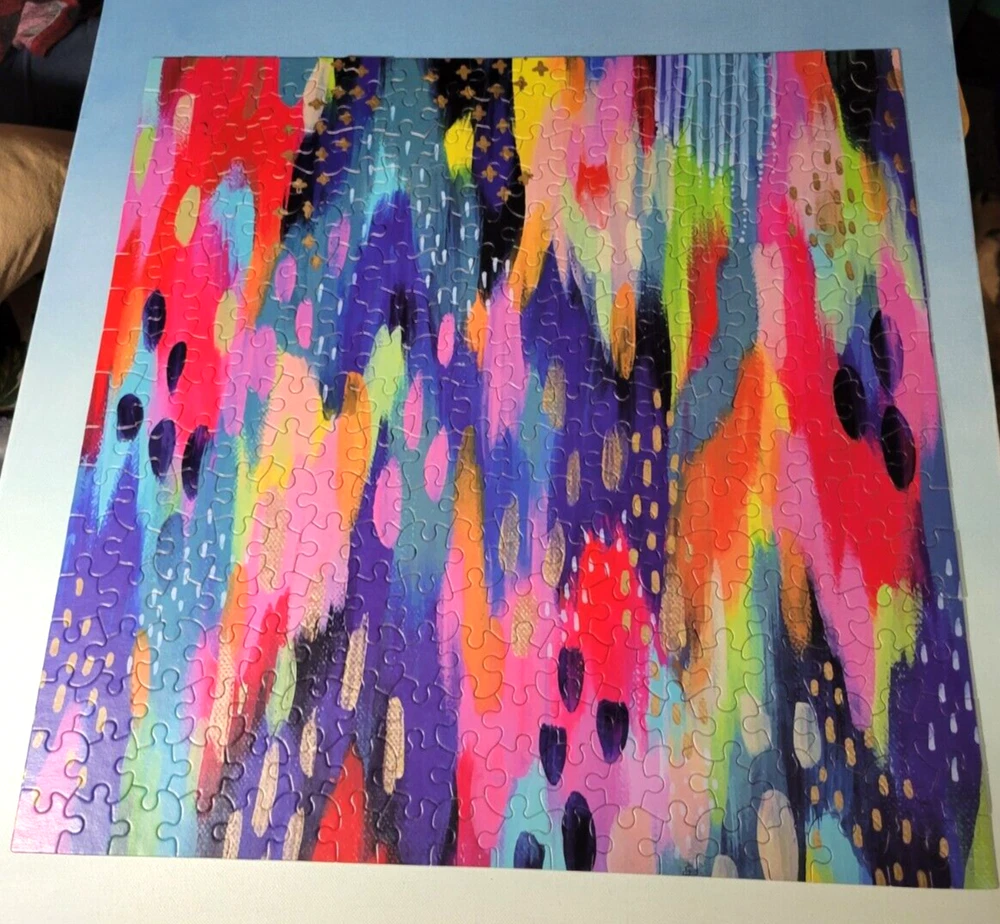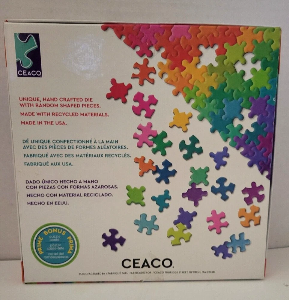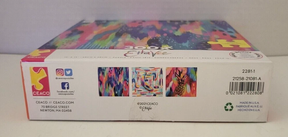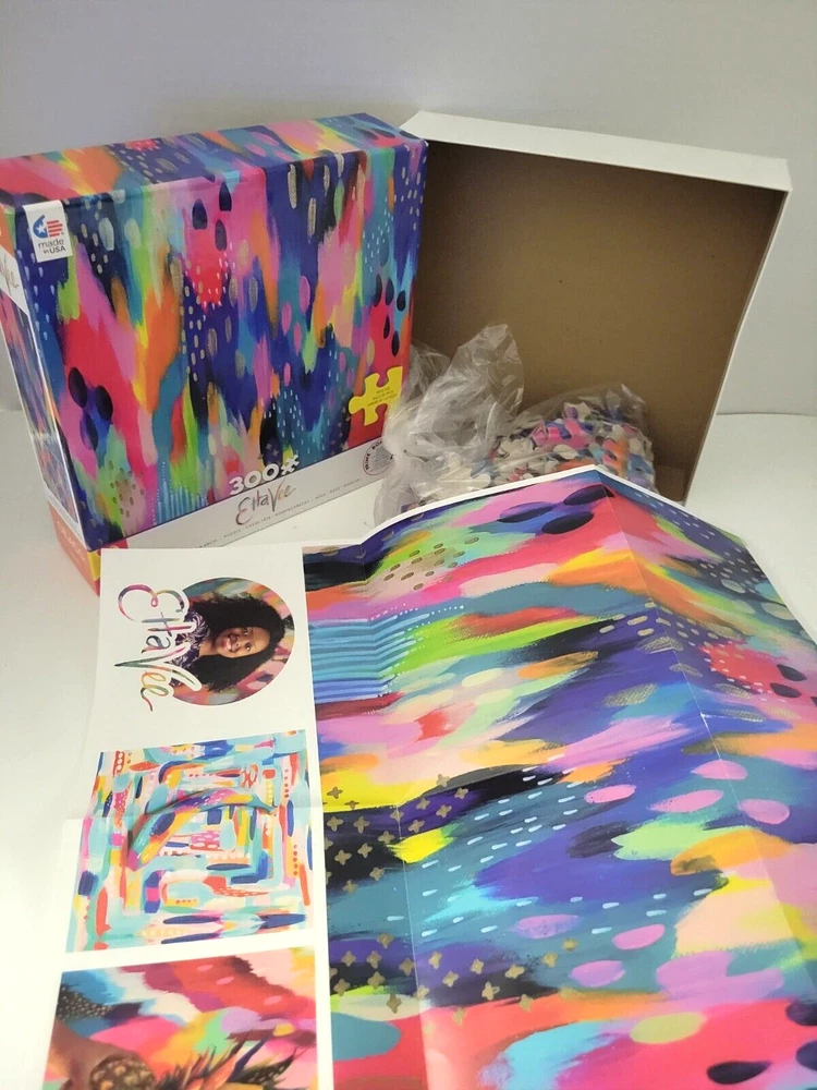 Etta Vee Multi Colored Jigsaw Puzzle 300 Pieces Large Pieces Ceaco 42251 Doing puzzles has some hidden benefits. Excellent qualities : Cultivate concentration, patience, and temper your will Movement development : Train hand-eye coordination and precise small movements Spatial intelligence : Improve visual discrimination of colors and shapes Critical thinking ability : Understand the relationship between parts and the whole, and draw inferences from one example to explore the future Relaxes your mind : Relieve work pressure and release yourself Brain development : Enhance memory and may help prevent or slow brain degeneration I worked this puzzle and it is complete, please see the picture. Each item is carefully packaged to prevent any damage and is shipped immediately with tracking.