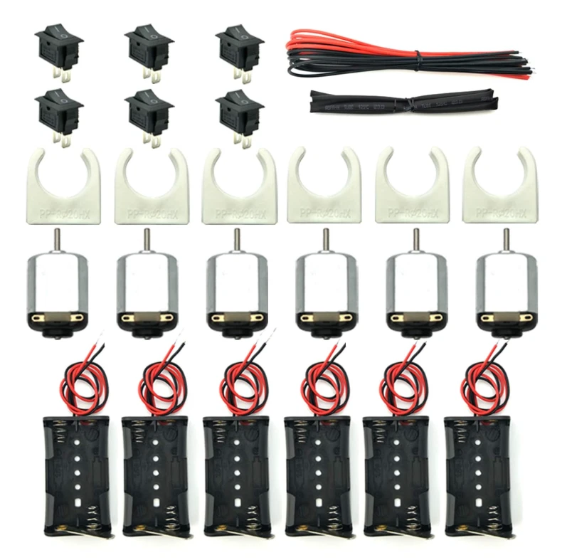 Get creative with the EUDAX 6 Set Small DC Motor Kit , a versatile and high-performance set ideal for hobbyists, DIY enthusiasts, and makers. This kit includes 6 mini electric motors that run on 1.5V to 3V , with speeds up to 24000 RPM , providing the perfect solution for a wide range of DIY projects, toys, models, and electronics. Whether you’re building a custom toy, robotic project, or just experimenting with small electronics, this kit has everything you need to get started! Key Features: High-Speed Mini DC Motors: Each motor operates at a 1.5V-3V voltage range, providing impressive speeds of up to 24000 RPM . These motors are perfect for small DIY projects, including toys, robots, and other electronic creations. Complete DIY Kit: The set includes 6 motors , 2 AA battery holder cases , motor brackets , a rocker switch , and 12 pieces of 25cm electronic wires , giving you all the essential components to power and control your motors in various applications. Easy to Assemble: This kit provides everything you need for easy assembly and integration into your projects. The motor brackets make it simple to securely attach the motors, while the battery holder case and wires ensure convenient power connections. Wide Application: Perfect for DIY toys , robotics projects , model making , small machines , and other electronic experiments. Whether you’re teaching electronics to students or creating fun, hands-on projects, this kit is the ideal choice. Versatile Voltage Range: The motors are compatible with a wide range of voltage inputs from 1.5V to 3V , allowing you to experiment with different power sources like AA batteries or other low-voltage power supplies. Rocker Switch for Easy Control: The included rocker switch allows you to easily control the on/off function of your motor, making it simple to start and stop your projects with ease. Why Choose the EUDAX Small DC Motor Kit? Complete Starter Kit: This all-in-one kit gives you all the necessary parts, including motors, battery holders, switches, and wires, so you can jump straight into your DIY projects without needing additional components. High-Speed and Reliable Performance: With motors running at up to 24000 RPM , you get fast and reliable performance for various small projects and experiments. Perfect for Hobbyists & Educators: Whether you're a hobbyist looking to explore motor-powered projects or an educator teaching students about basic electronics and motors, this kit is a great hands-on tool for learning and creativity. Take your DIY projects to the next level with the EUDAX 6 Set Small DC Motor Kit . Perfect for toys , robotics , and other fun DIY creations, this kit provides high-speed motors, essential accessories, and all the components needed to power your projects with ease. Start building your next innovation today! SHİPPİNG & RETURN FREE Shipping on all orders. Orders are shipped within 1-2 business days after payment confirmation. For 95% of our items, we offer express shipping services (receive your item within 1-5 business days). In rare cases, delivery times may be slightly extended due to unforeseen circumstances. For delivery status updates, feel free to contact us anytime — we respond as quickly as possible. 30-Day Return Policy: You can return your item within 30 business days.