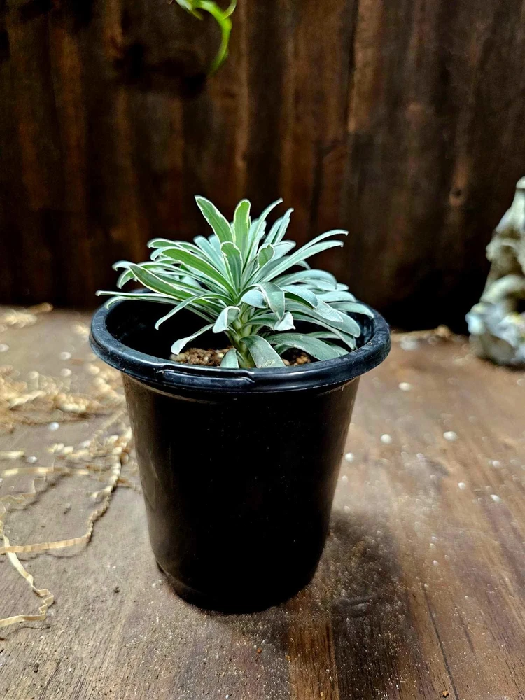 Euphorbia 'Glacier Blue' in a 4" Pot - Actual Item - CLEARANCE SALE ! 1692 Euphorbia 'Glacier Blue' is a striking and elegant succulent known for its bluish-gray leaves edged with creamy white margins. This plant has a compact, upright growth habit, making it an excellent choice for both indoor and outdoor collections. Light : Prefers bright, indirect light to full sun Watering : Allow soil to dry between waterings; drought-tolerant Soil : Well-draining cactus or succulent mix As-Is / Actual Item: Please take a moment to carefully review the provided pictures, as they form an integral part of the item?s description. Be aware that the item?s appearance may vary due to shipping conditions or changes over time if not sold immediately. Additionally, the price may be adjusted at any time to reflect the current condition of the item while it remains in our care. We appreciate your understanding. Returns: If you need to return an item, we kindly ask that you reach out to us first. We?re committed to resolving any issues you might face. In the event that your purchase is defective or damaged, please notify us immediately. For all other returns, items must be in unused condition, with original packaging intact and in a resalable state. These returns must be made within 30 days of receipt. The purchase price will be refunded using the same method as the original payment. Shop with confidence and thank you for choosing us for your shopping needs! We appreciate your business.