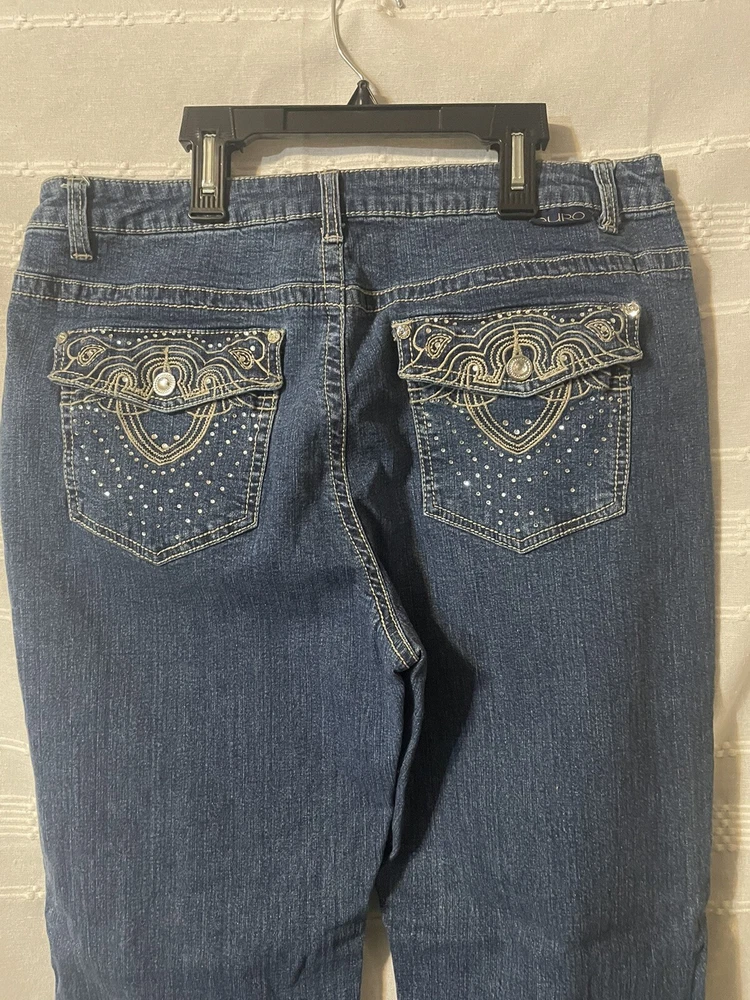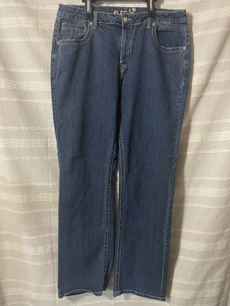 Euro Blue Denim Jean Women Sz 14 Great Condition 18.00. This pair of jeans is a must-have for any fashion-forward woman. The solid blue color and USA-themed accents make it perfect for a casual day out or a night on the town. The 5-pocket design with button and zipper closure ensures that your belongings are safe and secure. The spandex and cotton material with a denim fabric wash provides a comfortable and stretchy fit, while the mid-rise and regular fit make it flattering for all body types. The distressed and vintage-free design with a cowboy-inspired theme makes it a versatile addition to any wardrobe. Machine washable and made in China, these jeans are perfect for any season. Great condition- Smoke free home- Thanks for stopping in check out my online thrift stuff added daily much love Shelly J đź’š