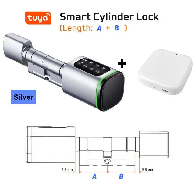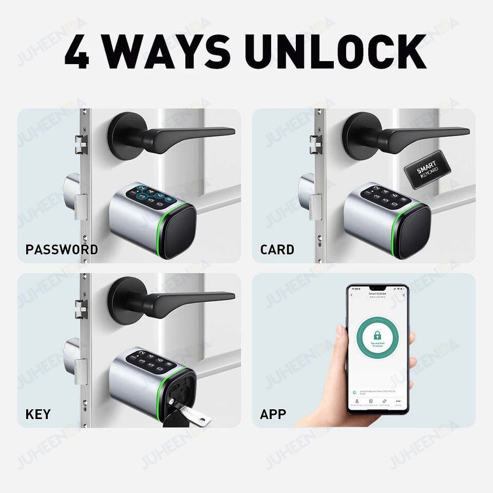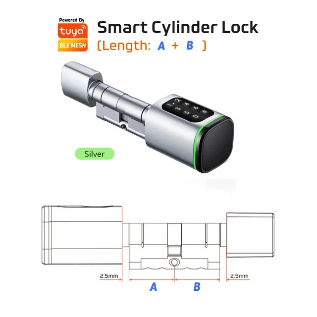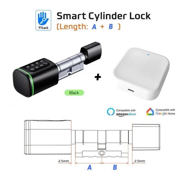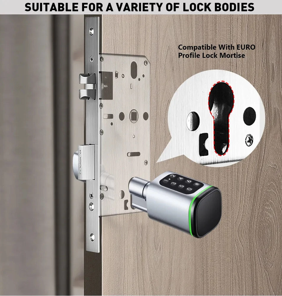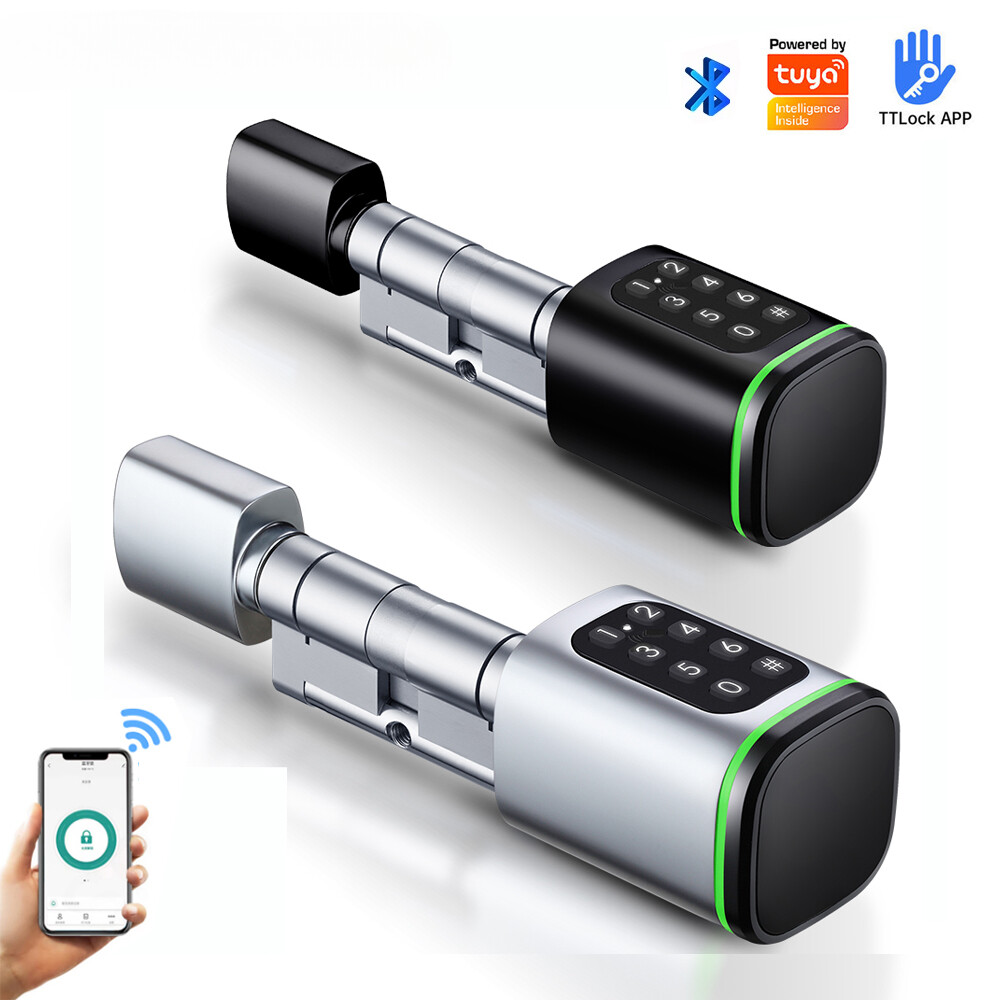 Euro Door Smart Cylinder Lock Tuya Bluetooth APP Digital Password Card Mechanicak Key TTlock Unlock Home Electronic Smart Lock Core Specification Material: 304 stainless steel + Aluminum + Plastic Color: Black, Silver 4 Unlock Ways: Password, Card, Metal Key, Tuya App ( Bluetooth ), TTlock App Lock Cylinder Size: 60mm, 70mm, 80mm, 90mm, 100mm,110mm Door Thickness: 60-110 mm Power Supply: Powered by 1pc CR123A battery ( Not included, customer should buy themself ) Emergency Power Supply: With Micro Type-C USB Charging Supported by Tuya App Tuya App is an smart lock app, its multiple functions always satisfy your requirements ● Manage fingerprint, card,APP user ● View access logs ● Check alarm and unlock record ● The language of the APP follows the mobile phone system ..etc. ● Tuya options with gateway , The smart lock can connect to WiFi. TT lock APP Functions: 1.The lock connect with the phone by Bluetooth. 2.Send temporary/ekey password remotely 3.You can open the lock / manage the lock (add user / delete user / set password and so on) 4.Add a G2 gateway if WiFi connection is required (Gateway buy extra)Connect Alexa through G2 gateway Gateway Connection method The lock can be connected directly with the bluetooth of the mobile phone The gateway can make it connect to wifi and compatible with Alexa and Google home ● Order TT Lock options with gateway G2. The smart lock can connect to WiFi and control by intelligent voice system with other smart home devices to achieve smart home. Details and Batteries This cylinder lock is an advanced smart lock offering Airbnb integration and high-tech automated features. The automatic lock feature can adjust the time for the ultimate security setting. The long life battery ensures the quality utilizing. ◆ How to judge whether it is suitable 1. The lock cylinder type is the same, 2. The size of the lock cylinder is the same or smaller How To Install? ●Simply use a screwdriver to install in 3 minutes ●No breaking the door or change the door body Packing Included Smart Cylinder Lock x1 Smart IC Card x 2 Mechanical Key x 2 Use Manual x1 Screw Bag x1 If you have many family numbers, and want more IC cards, pls Contact us freely!